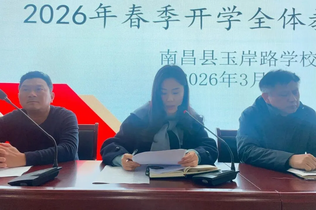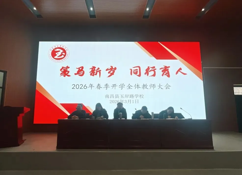 春潮涌动启新篇,奋楫扬帆正当时。为统筹部署新学期各项工作,明确办学发展方向,凝聚全体教师育人合力,确保新学期教育教学工作平稳、高效、优质推进。南昌县玉岸路学校于2026年3月1日上午召开2026年春季新学期教师大会,全体教职工齐聚一堂,共赴新程,为新学期教育教学工作吹响奋进号角。