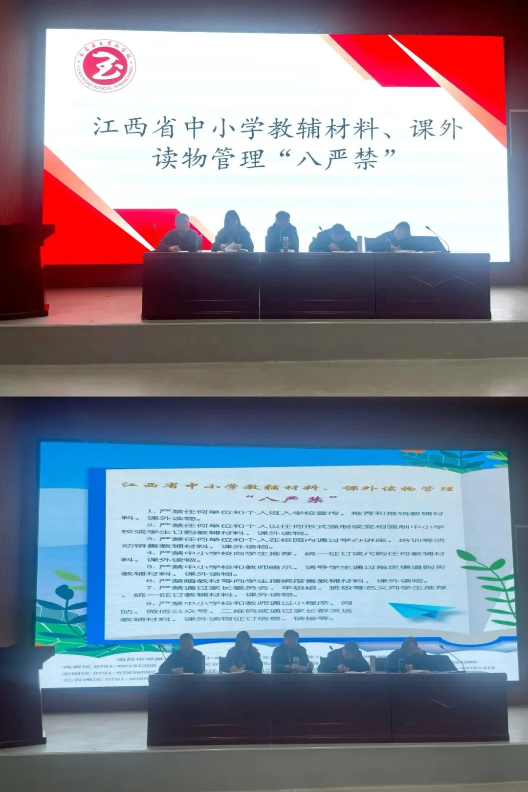 付校长特别强调,全体教师必须严格遵守江西省中小学教辅材料管理“八严禁” 规定,坚决杜绝违规征订、强制购买、推荐教辅等行为,做到令行禁止,切实规范办学行为,维护教育公平。