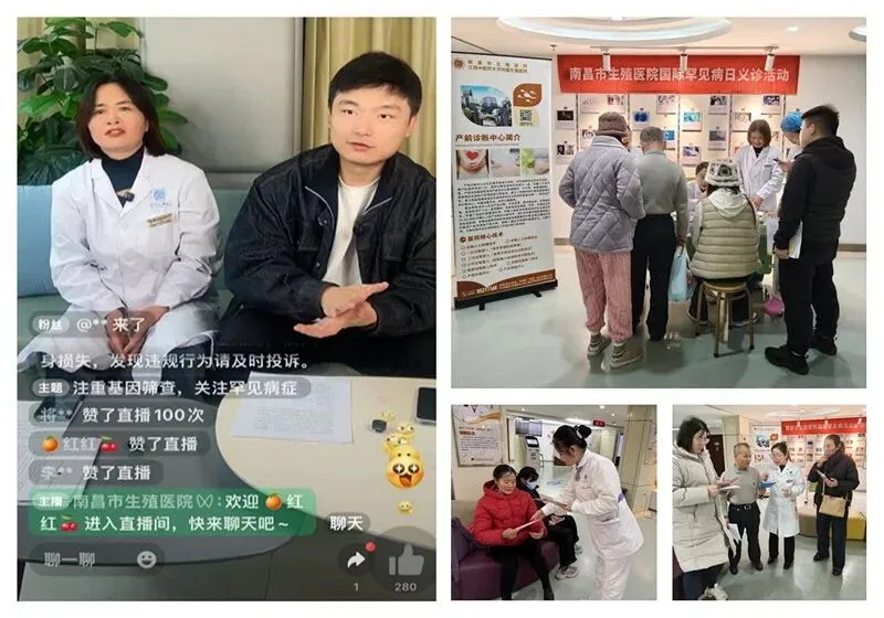 为进一步提升社会对罕见病的关注与认知,筑牢生育健康防线,2月28日,南昌市生殖医院(江西中医药大学附属生殖医院)开展“第19个国际罕见病日”主题公益活动,通过“线下义诊+线上直播”的组合模式普及罕见病防治知识,提供生殖遗传健康服务。