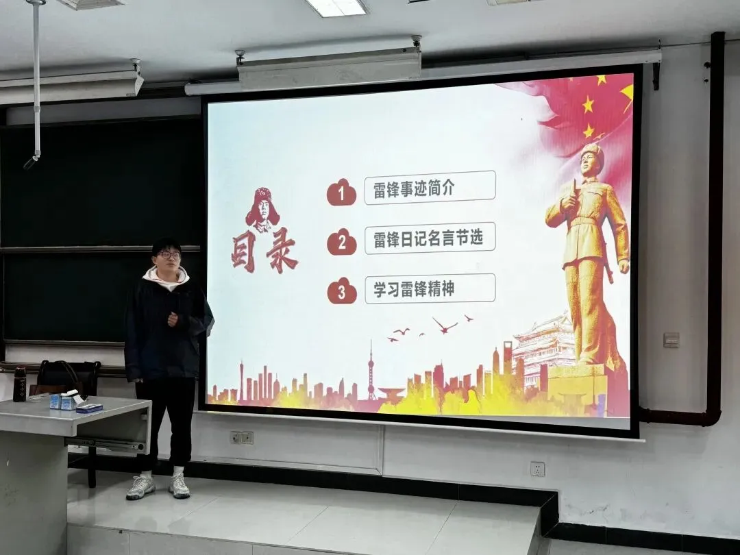 建筑与设计学院围绕“学习雷锋精神,培育时代新人”主题开展班会,通过视频学习、案例分享和师生交流,引导学生坚定理想信念,明确责任担当。学院还以“传承雷锋精神,凝聚红色力量”为主题,组织主题宣讲活动,院研究生会主席团成员万卉棋结合自身经历展开分享,她强调要深刻理解雷锋精神的时代内涵,并鼓舞同学们传承和弘扬雷锋精神,以实际行动续写新时代雷锋故事。