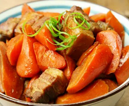 胡萝卜烧肉 酱干炒肉丝 海带排骨汤 香米饭