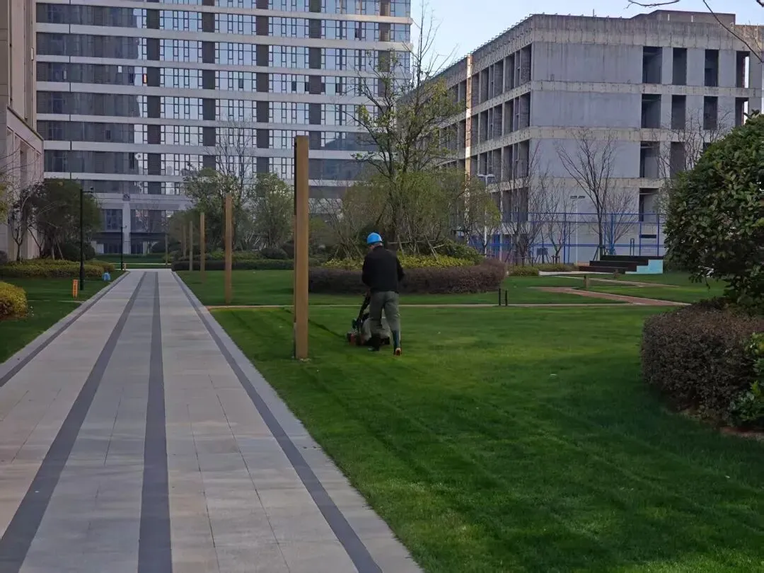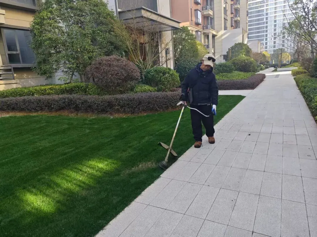 新力物业的双季草坪种植养护团队,让小区的高尔夫坡地草坪实现四季常青。即使在深秋初冬,当周边小区的草坪开始泛黄,这里的草坪依然绿意盎然。物业以持续巩固绿化成果为目标,让这片绿洲在区域内保持良好口碑。