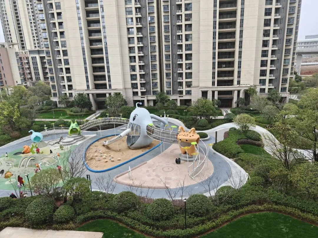 对于小朋友来说,小区就是天然的游乐场。儿童活动区掩映在绿树丛中,滑梯、秋千、攀爬架一应俱全,孩子们在草地上奔跑嬉戏,享受着城市里难得的自然野趣。