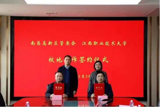 2月28日,江西职业技术大学与南昌高新技术产业开发区、南昌华勤电子科技有限公司合作签约仪式在濂溪校区举行。校党委书记刘小强,南昌高新区党工委副书记吴前进,南昌华勤公司人事行政总监王庆美,学校副校长卢致俊、黄强出席。