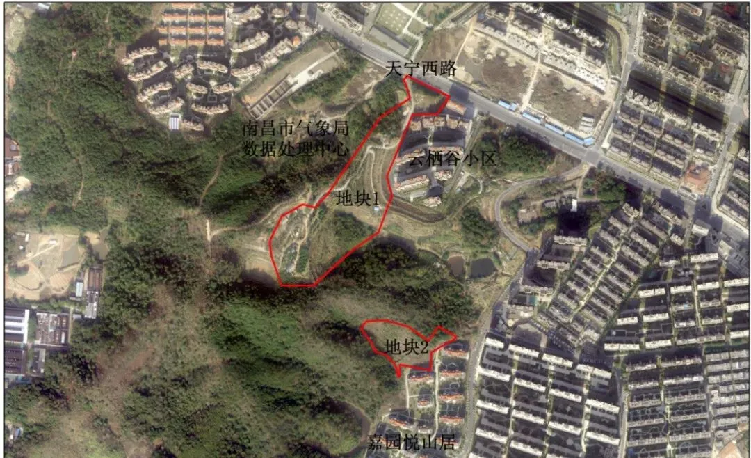 2:磨里山体育公园项目地块1东至云栖谷小区,西至南昌市气象局数据处理中心,南至霞麦村集体土地,北至天宁西路。