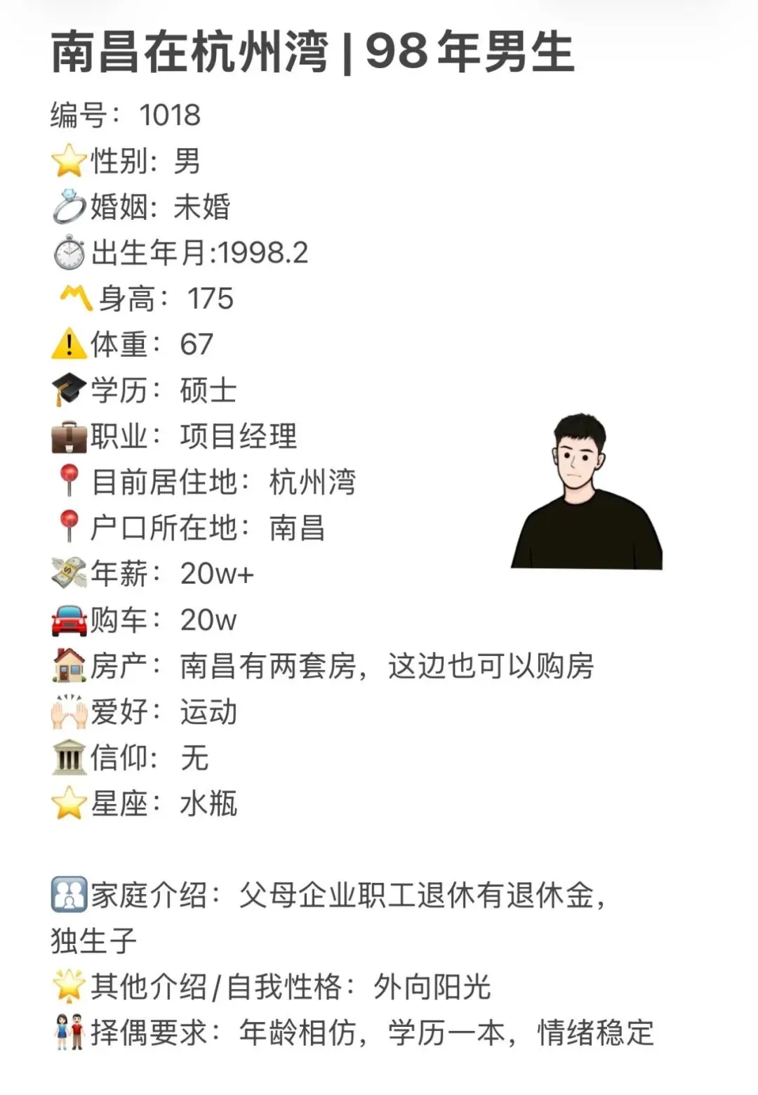 >南昌在杭州湾98年男生(硕士 项目经理 清秀)