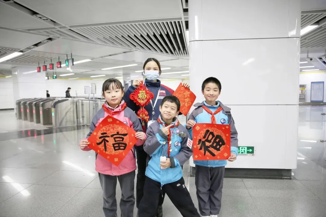 新春纳福,温情送暖。春节来临之际,学校大队部组织大队委走进青山路口地铁站,开展“童心送福暖地铁 巧手传情迎接新春”主题实践活动。活动中,队员们带着亲手准备制作的马年手工作品和福字,为地铁站的工作人员和过往乘客送上新春的美好祝福,一张张红福字为地铁站增添了浓浓的年味。