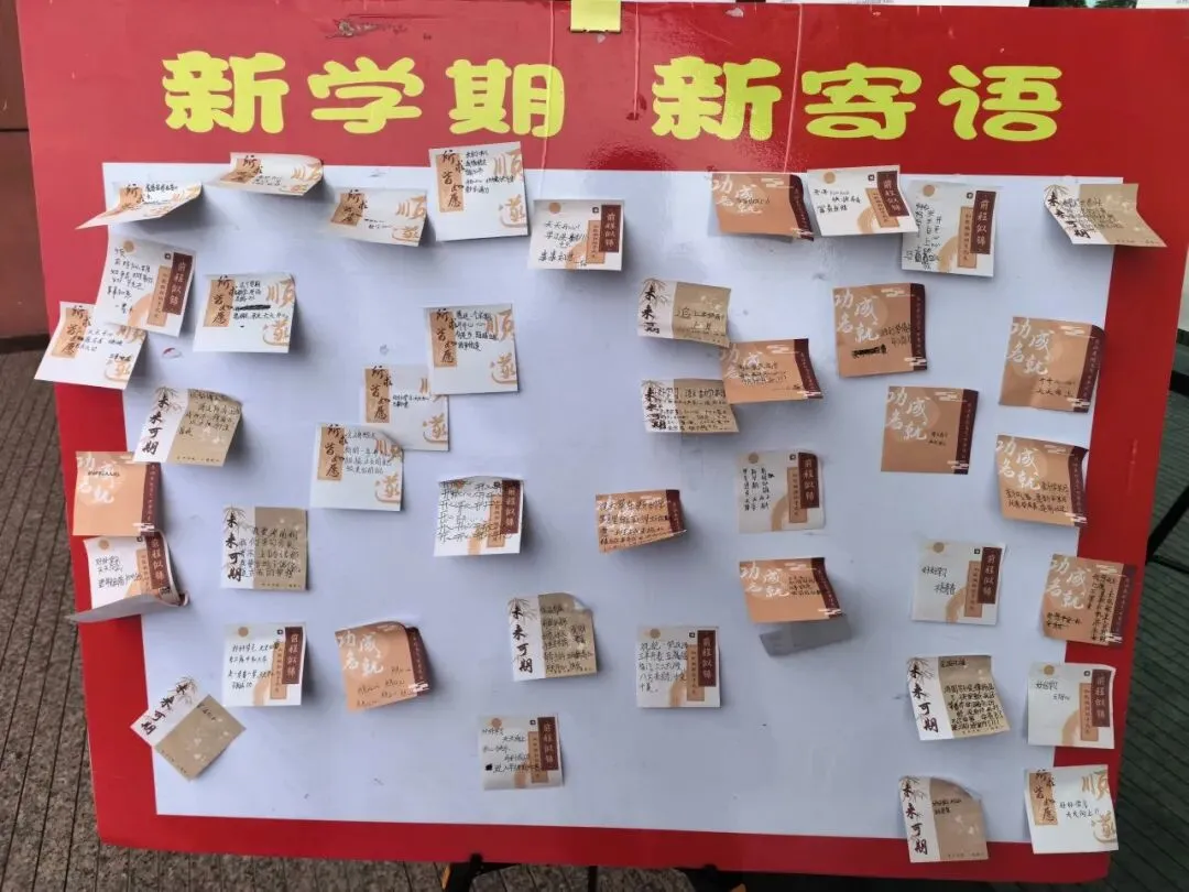 开学之际,同学们纷纷将自己对新学期的憧憬与目标付诸笔端,这些充满希望与梦想的话语展示在校园的展示区域,吸引了众多同学驻足观看、交流,大家相互激励,共同展望美好的新学期。