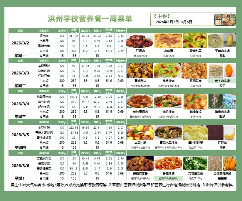 为了让您清晰了解孩子的在校饮食情况,现将本周营养食谱公布如下。