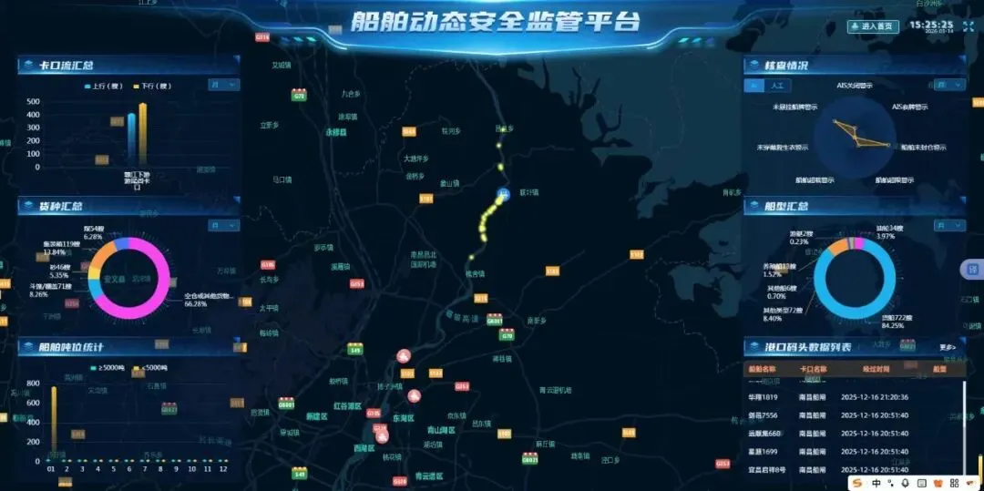 支队以科技信息化驱动执法模式变革,激活高质量发展新动能:“洪运通”APP上线以来,2025年辅助发现并处置违法案件396起,其创新应用模式获多地同行前来考察学习。南昌市船舶动态安全监管平台正式投用,运用AI技术实现智能识别预警、精准处置,提升水上监管智能化水平。升级版南昌市交通运输投诉系统整合9类投诉渠道,实现投诉精准登记、高效办结。