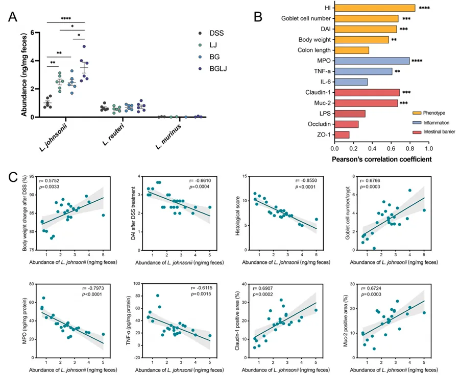 BGLJ合生元增加约氏乳杆菌丰度及其与结肠炎改善的相关性