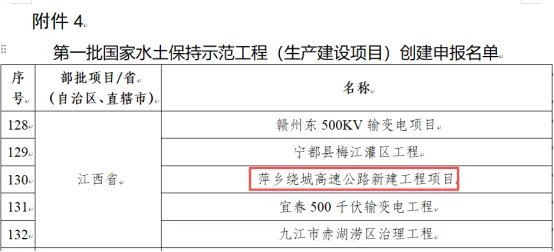 近日,水利部公布了第一批国家水土保持示范创建申报名单,江西省5个项目入围,其中,萍乡绕城高速公路新建工程项目成功入选。