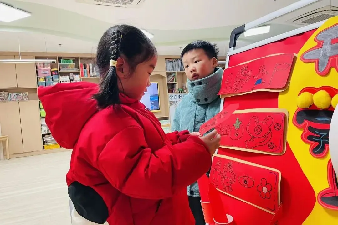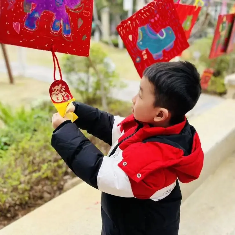 开学典礼后,各班级围绕文明素养、安全与习惯开展“开学第一课”,帮助孩子们以饱满状态迎接新学期。随后进行的趣味游园会巧妙融合元宵元素:猜灯谜、投壶、抬灯笼……孩子们在游戏中感受传统魅力。回到班级,大家讨论环境变化、共同制作春联,一笔一画间,写满对新生活的热爱与向往。