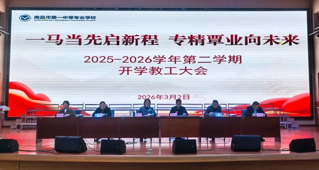 为确保新学期各项工作平稳有序、高质量推进,3月2日,南昌市第一中等专业学校隆重召开2025-2026学年第二学期开学教工大会。全体教职工齐聚一堂,统一思想、明确任务、压实责任,为新学期高质量发展定方向、划重点、明路径。