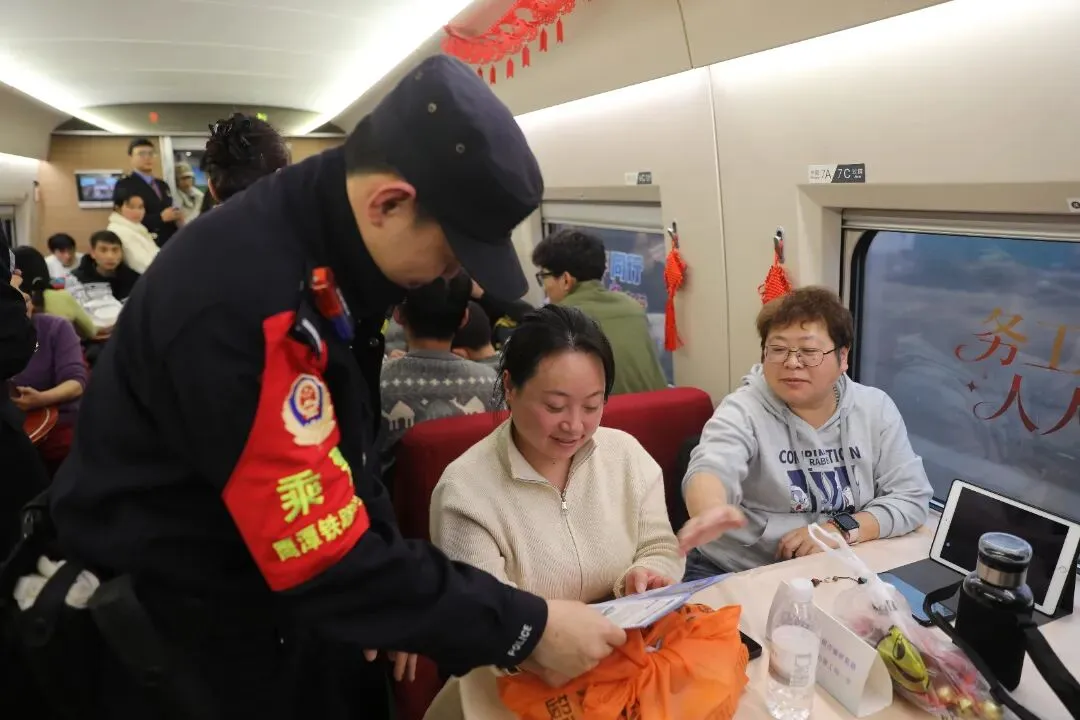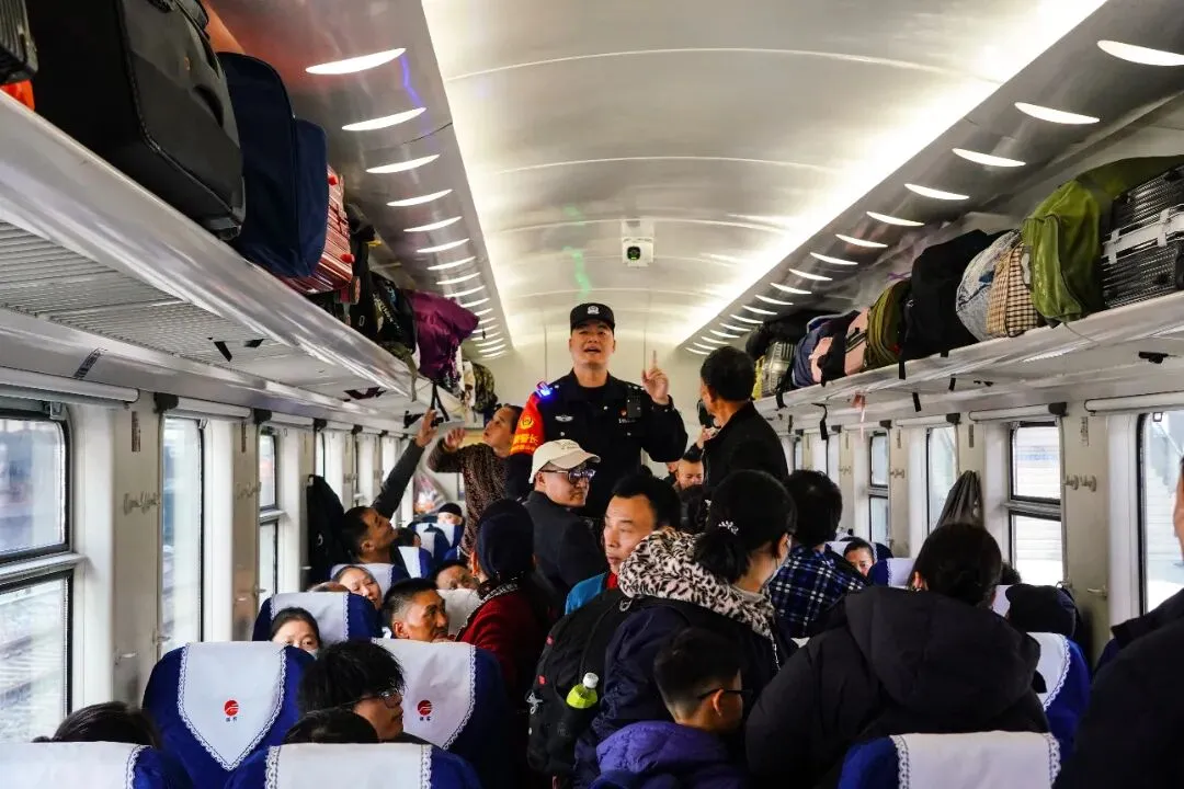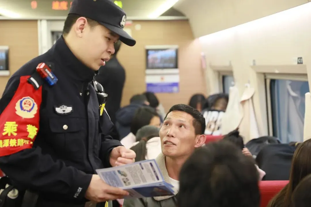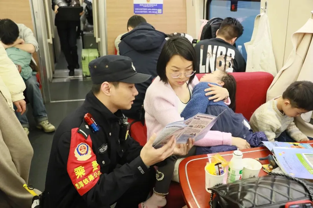 故事:春运期间,福州铁路公安处民警坚守线路防控一线,化身 “安全卫士”,用严谨细致的工作,为春运列车的安全运行保驾护航,让每一段旅途安心又顺畅。
