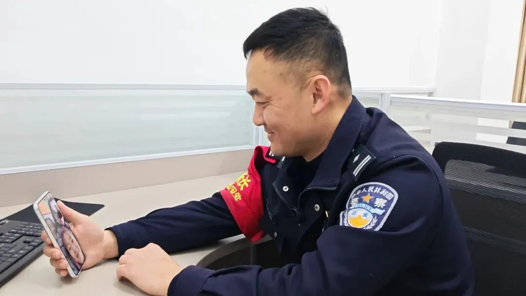 故事:春节值班期间,南昌西站派出所民警同妻儿视频。屏幕里家人的笑脸,屏幕外坚毅又温柔的目光,是爱与责任的交织。