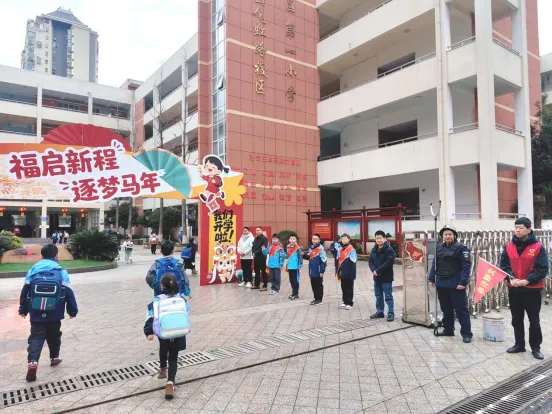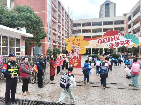 3月2日开学第一天,清晨的校园门口暖意融融。学校行政人员、文明岗师生、家长护学岗志愿者与公安、交警早早到位,共同迎接学子们返校。根据省教育厅“安全教育周”工作部署,我校精心组织了一系列安全教育活动,开启新学期的安全第一课,将安全意识深植师生心中。