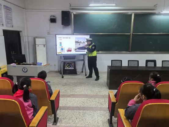 下午,学校特邀红谷滩交警大队八中队叶晖警官为师生带来一场生动的《小学生交通安全知识培训》讲座。叶警官结合学生年龄特点,用通俗易懂的语言讲解交通信号、斑马线规则、正确佩戴安全头盔等知识,并通过真实案例警示同学们遵守交规的重要性。现场互动热烈,同学们在轻松氛围中掌握了实用的交通安全技能。