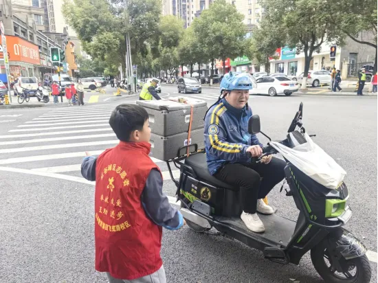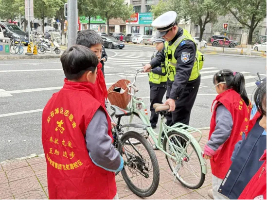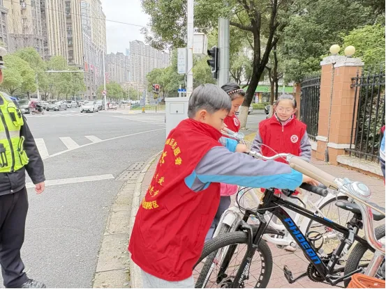 讲座结束后,学生志愿者们跟随叶晖警官、风华社区工作人员和老师们走出校门,开展文明交通志愿服务。时值3月5日学雷锋日来临之际,孩子们以实际行动践行雷锋精神。他们在路口引导行人走斑马线、不闯红灯,将路边乱停放的自行车、电动车摆放整齐。一个个忙碌的身影,传递着文明出行的理念,也赢得了路人的点赞。