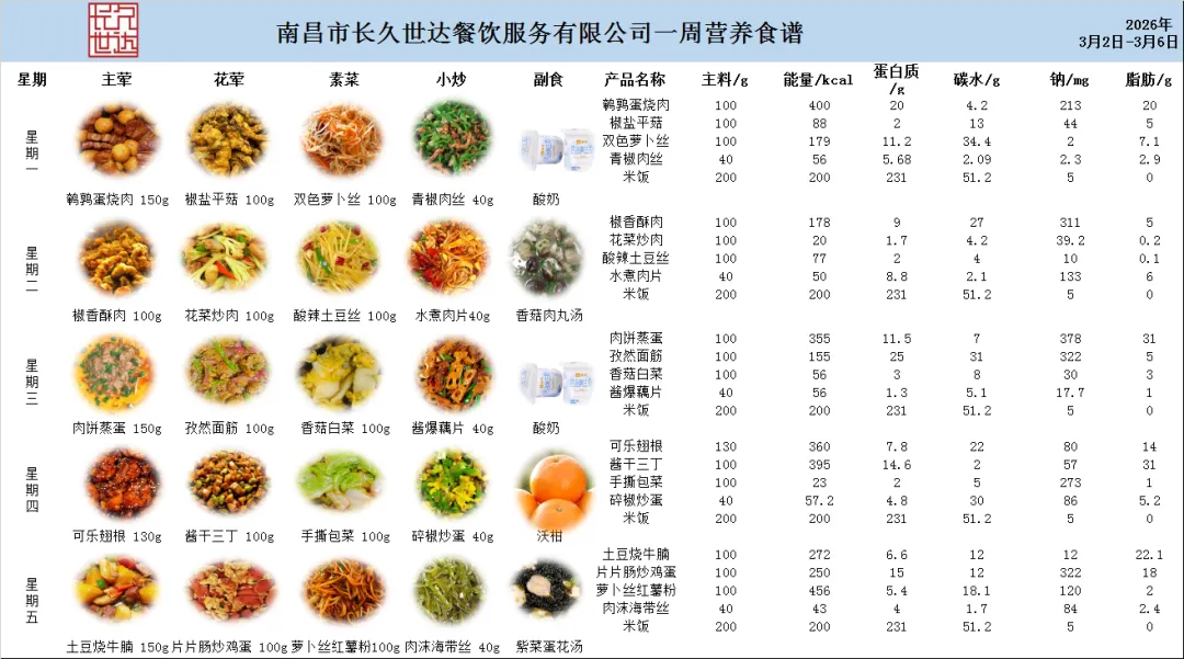 根据《南昌市中小学校(幼儿园)配送餐管理办法》和《南昌市加强校园餐管理措施十条(试行)》文件精神,现将学校2026年3月2日~6日(一周)带量菜谱公示如下。