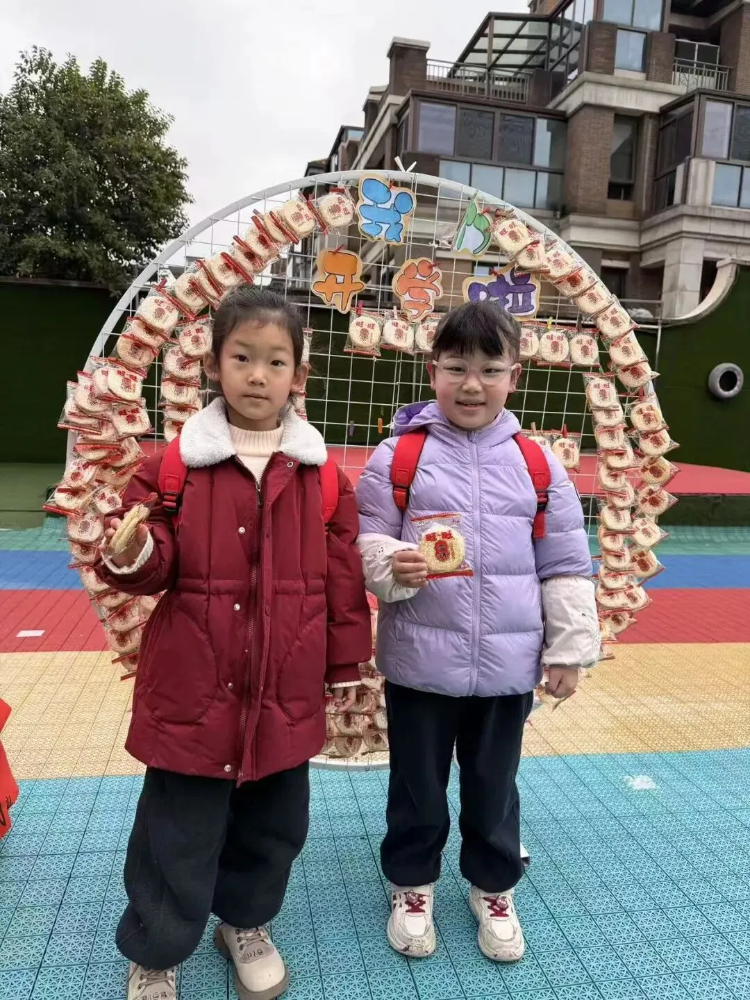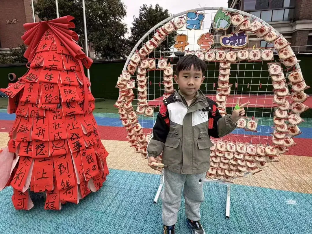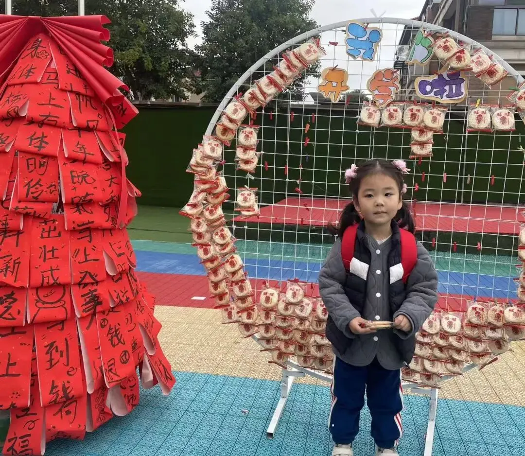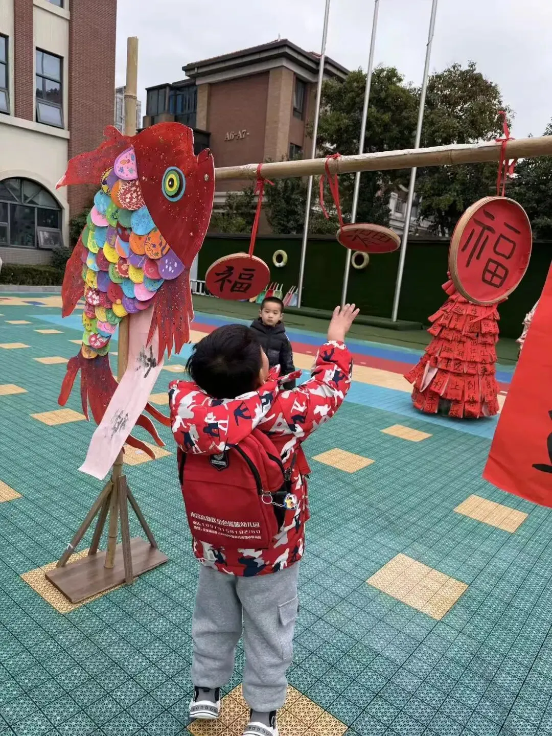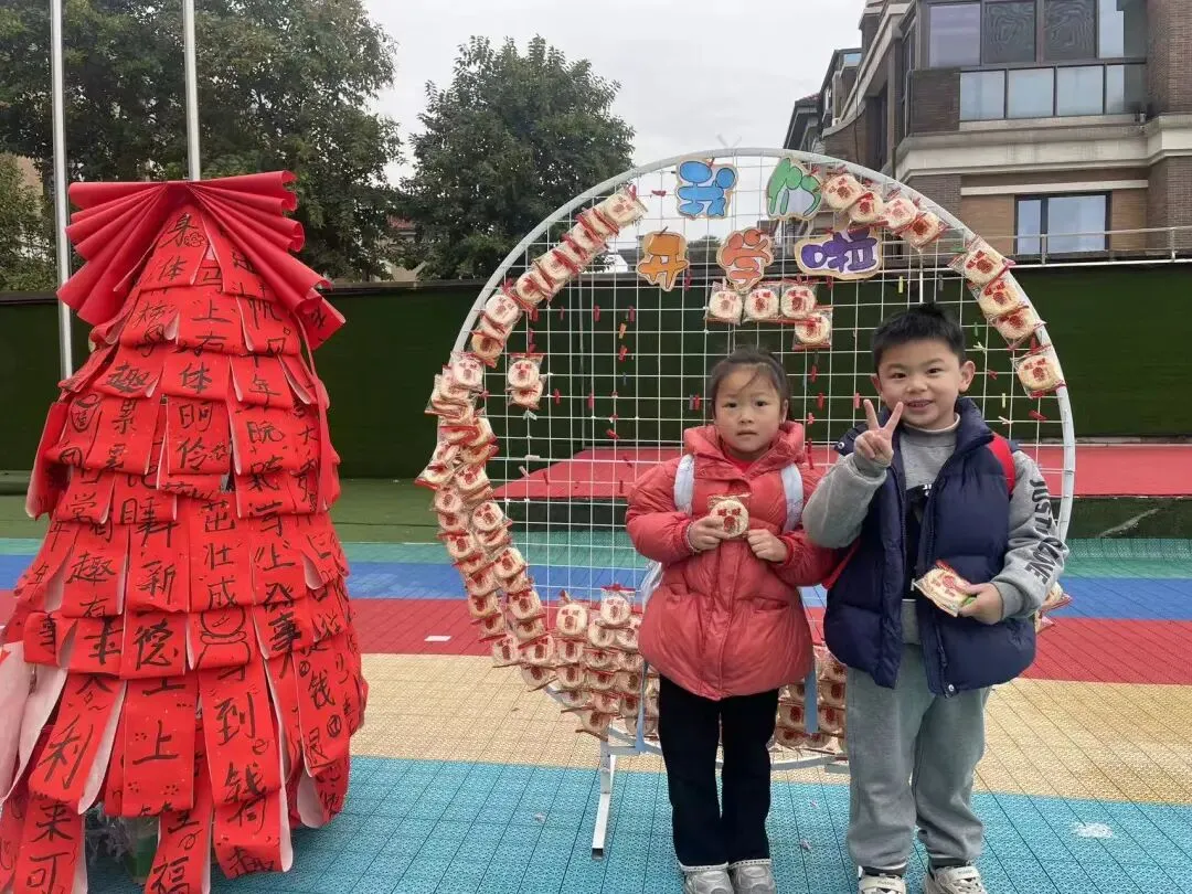 孩子们奋力一跳,触摸高高挂起的“福”字——这一跳,跳出了新学期的活力;这一摸,摸来了整年的福气!
