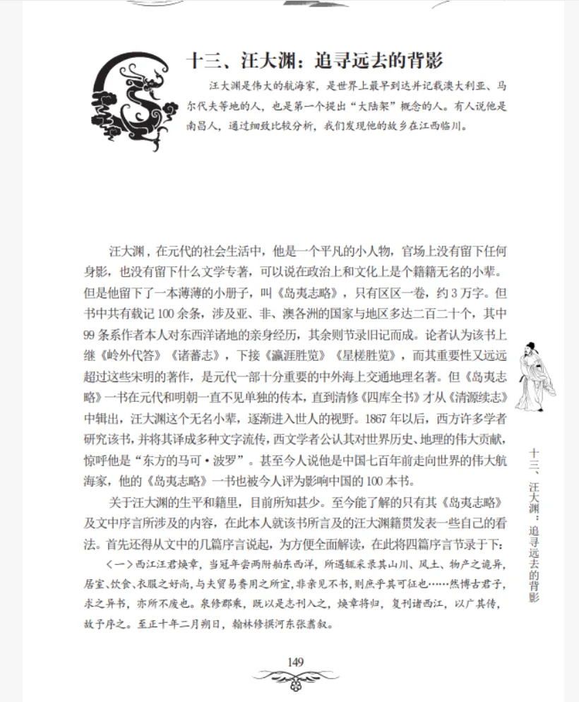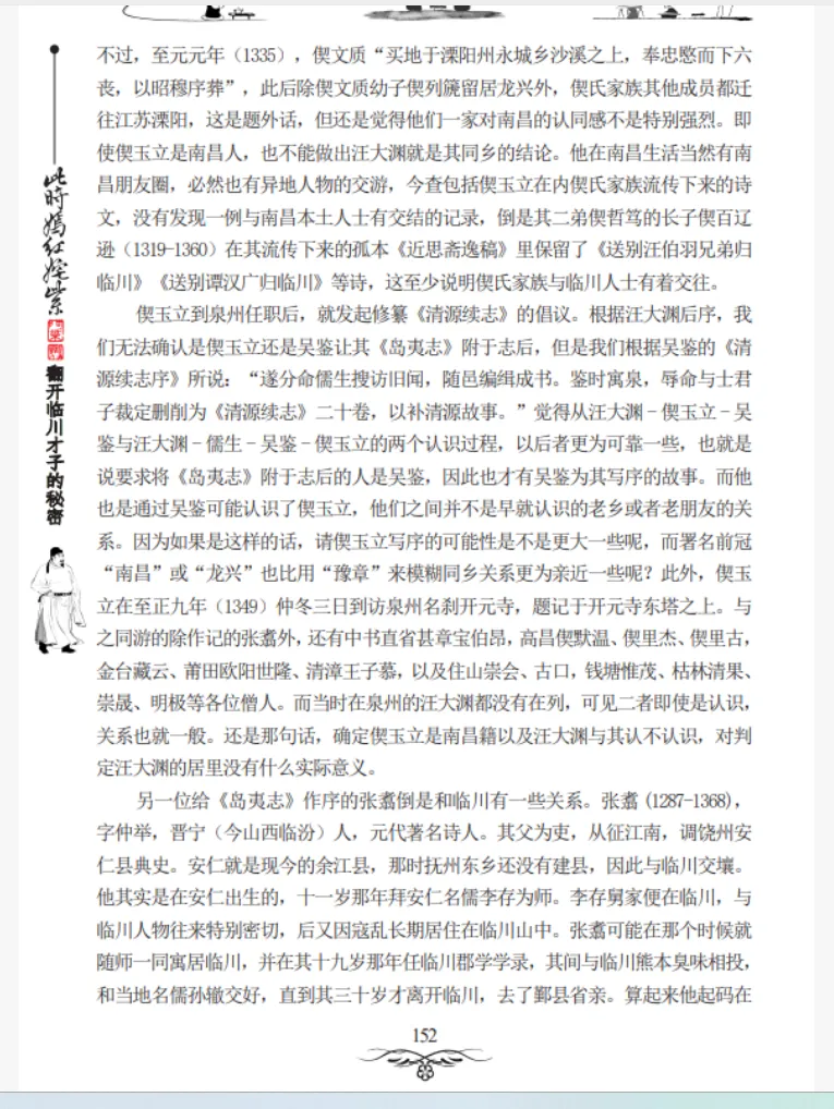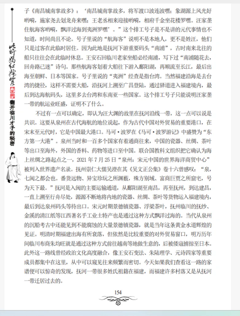 然而,近日,临川学者付国斌在其新著《此时嫣红姹紫 —— 翻开临川才子的秘密》(中国社会科学出版社)中,大胆披露汪大渊实为江西临川人。