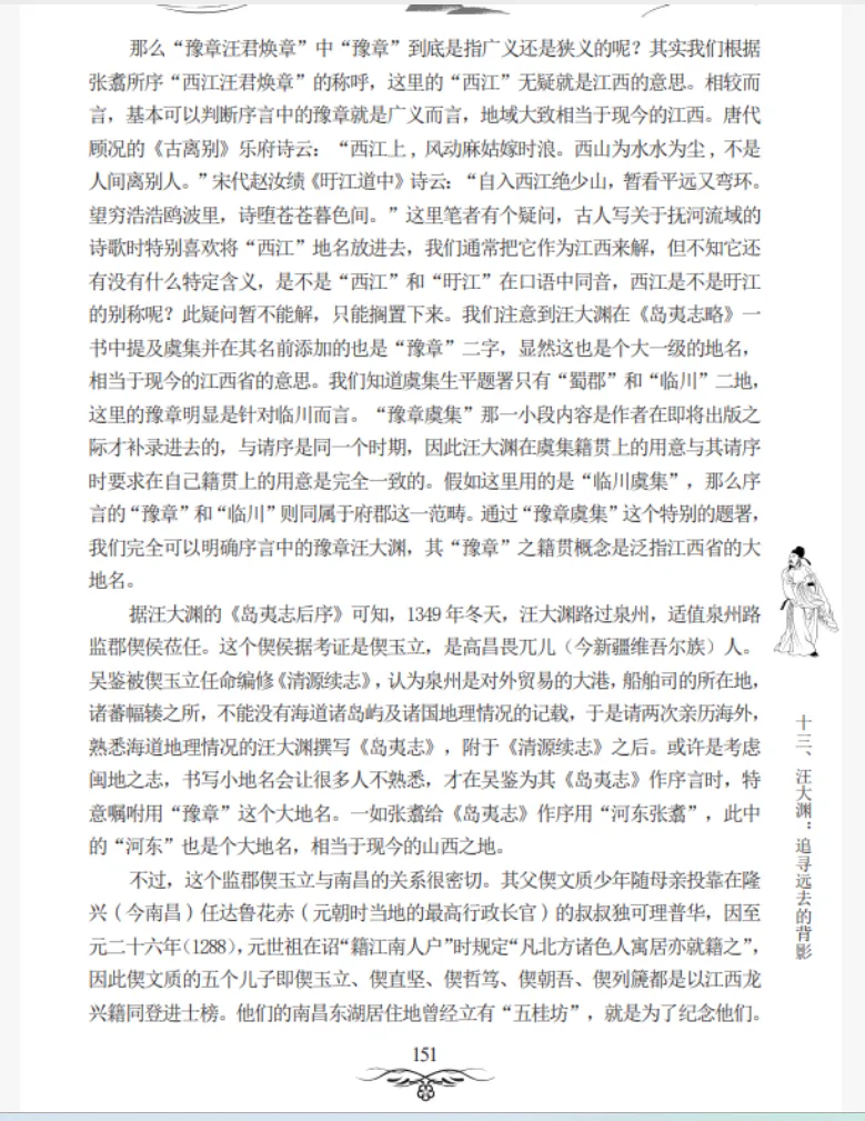 第二,汪大渊本人在书中称虞集为“豫章虞集”,而虞集明明是临川人。这说明在汪大渊的用语里,“豫章”就是江西省的泛称。