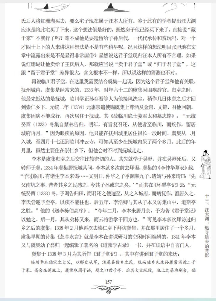 临川城南,春风楼下,住着汪家;往南一里,青云峰下,是李本的君子堂;李本和虞集是师生,虞集晚年也住在春风楼一带。