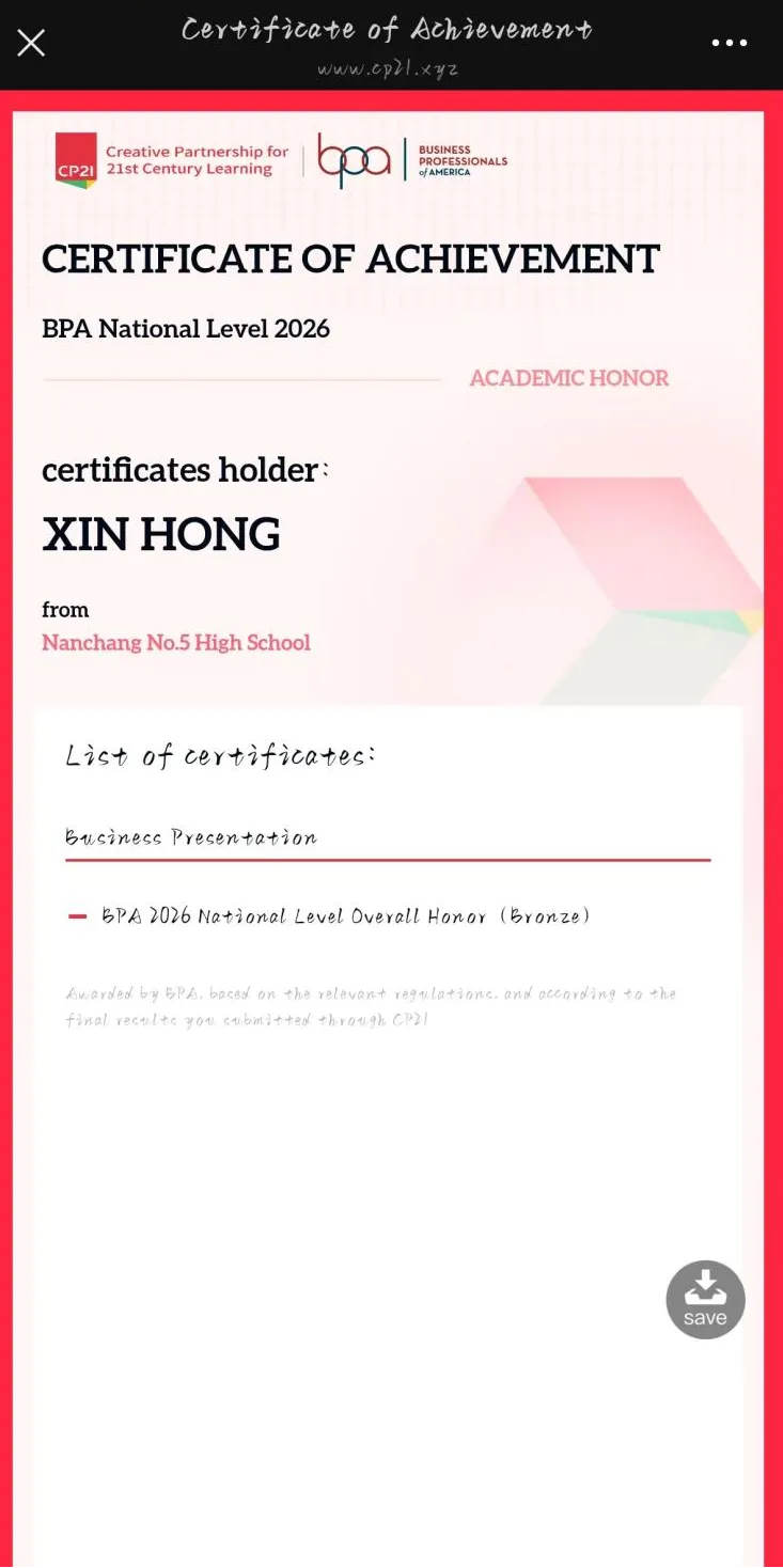 BPA 2026 National Level Overall Honor (Bronze)/BPA 2026全国站铜奖