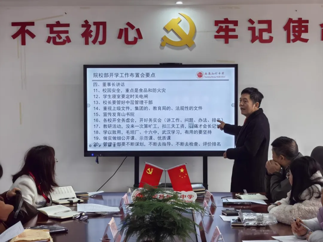 新学期,新起点,新征程。南昌知行中学将以此次会议为契机,凝心聚力、真抓实干、精益求精,以严谨细致的工作态度、扎实高效的工作作风,全力保障2026年春季学期开学工作平稳有序、高质量推进,奋力谱写新学期学校发展新篇章!