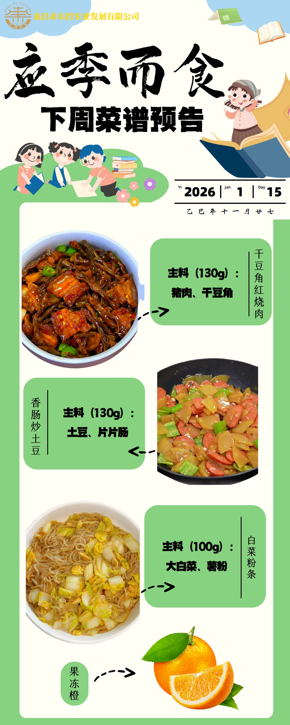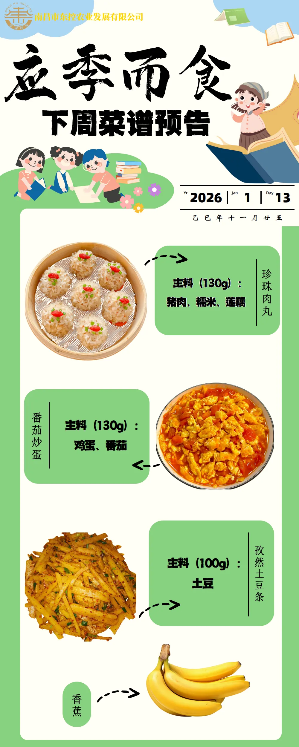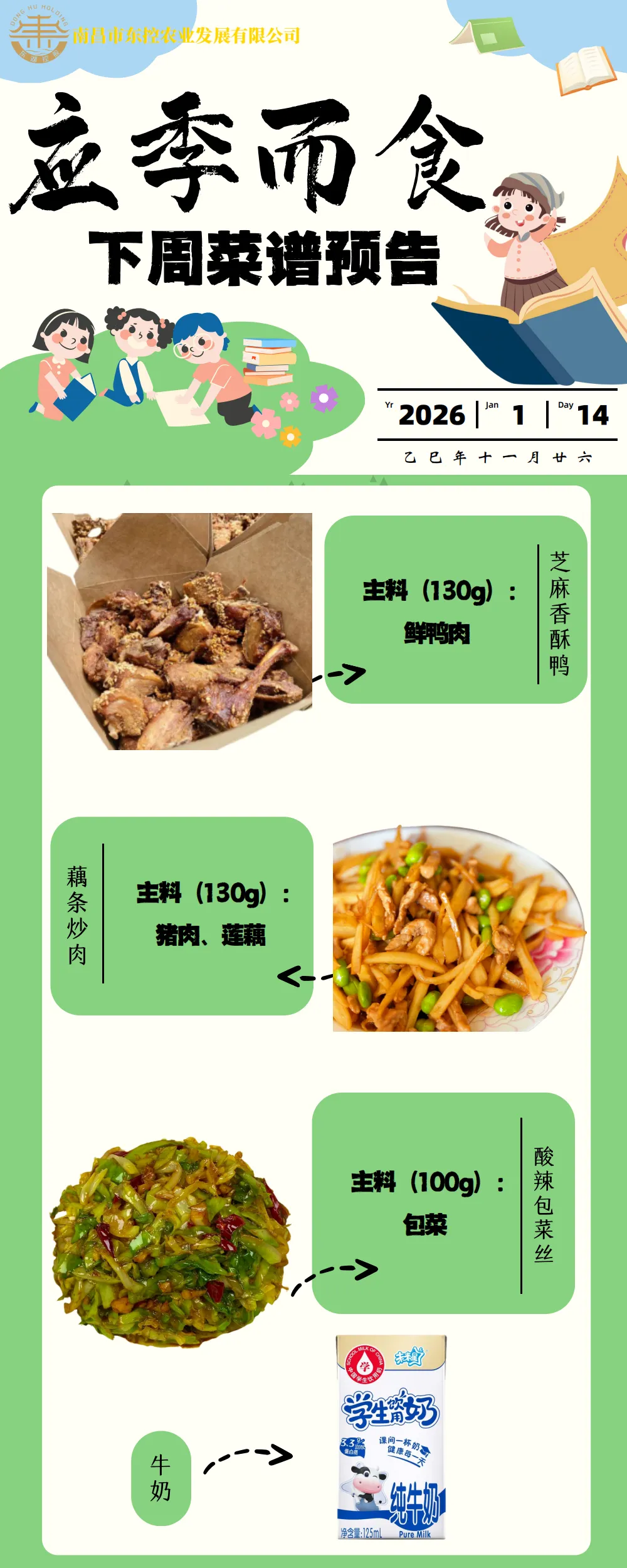 根据《南昌市中小学校(幼儿园)配送餐管理办法》和《南昌市加强校园餐管理措施十条(试行)》文件精神,现将学校2026年1月12日~16日周带量菜谱公示如下。
