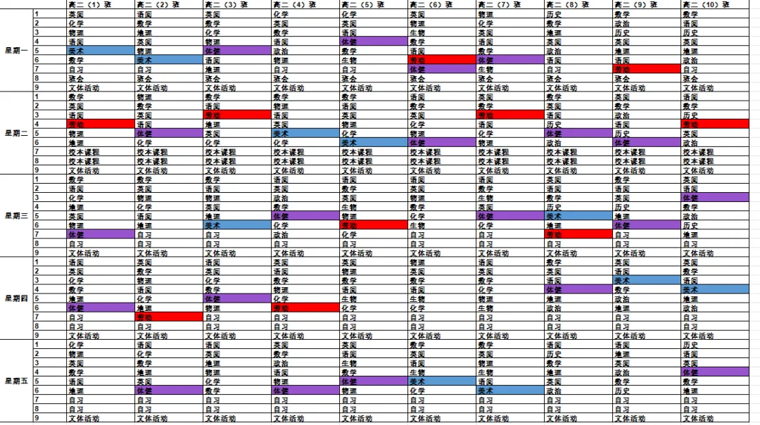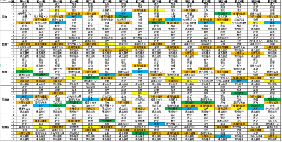 教务处南昌市豫章中学2025年3月2日 9:00江西 为倡导“五育并举”,推进中小学美育、体育及劳动教育工作,进一步贯彻落实江西省教育厅《关于开展中小学体育美育劳动教育“晒课表”的通知》和《关于进一步做好全省义务教育学校课后服务工作的通知》等相关文件精神,我校严格落实美育、体育和劳动教育开设要求,按照国家课程方案和课程标准开齐开足体育美育劳动课程,特向社会公开2025-2026学年度第二学期美育体育劳动教育课程设置安排表。