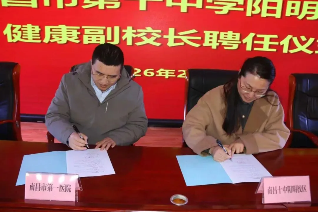这是医与教的握手,也是专业与温情的相遇。在全体教工的见证下,党委副书记、校长王欣芳,党委委员黎莉,执行副校长李斌分别代表三校区与健康副校长签署了《南昌市医教融合共同体项目合作协议》。落笔无声,却承载着千钧之重——从此,专业医疗资源化作润泽校园的春雨,守护每一个生命的健康成长。