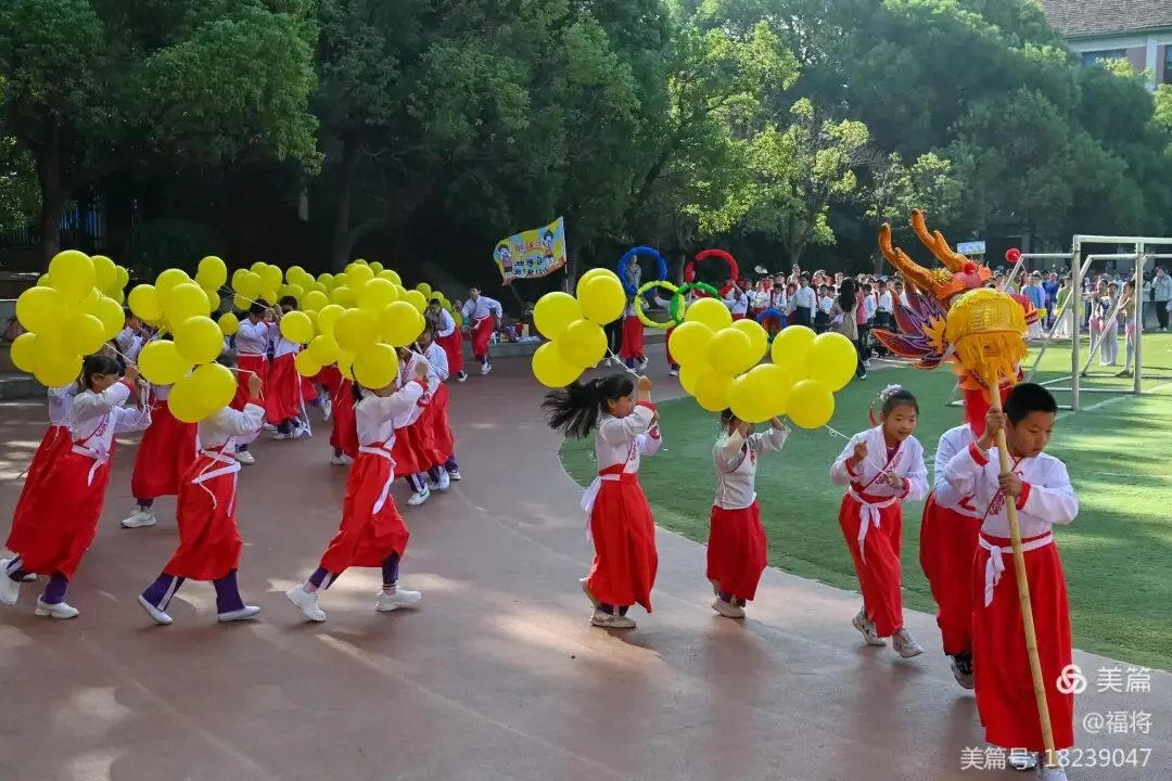 由国旗班方阵率先入场,迈着庄严的步伐,展示了昂扬向上的风采;随后啦啦操社团方阵整齐划一的动作、振奋人心的跳跃,感染了每一位观众;各年级方阵精彩纷呈,有的方阵翩翩起舞,展现出育新学子的风采 ;有的则挥舞着花球连接成一条大龙,放飞花球,放飞梦想;有的方阵将奥运项目搬到展示台上,表现对体育的热爱与追求;有的方阵穿着56个民族的服装,歌唱民族大团结;有的方阵慷慨激昂地朗诵《少年中国说》,展示了新时代少年担当……最后,快乐体操社团的弹网操表演,将现场参与开幕式的热情推到了高潮,现场欢呼声、掌声此起彼伏,气氛热烈非凡。