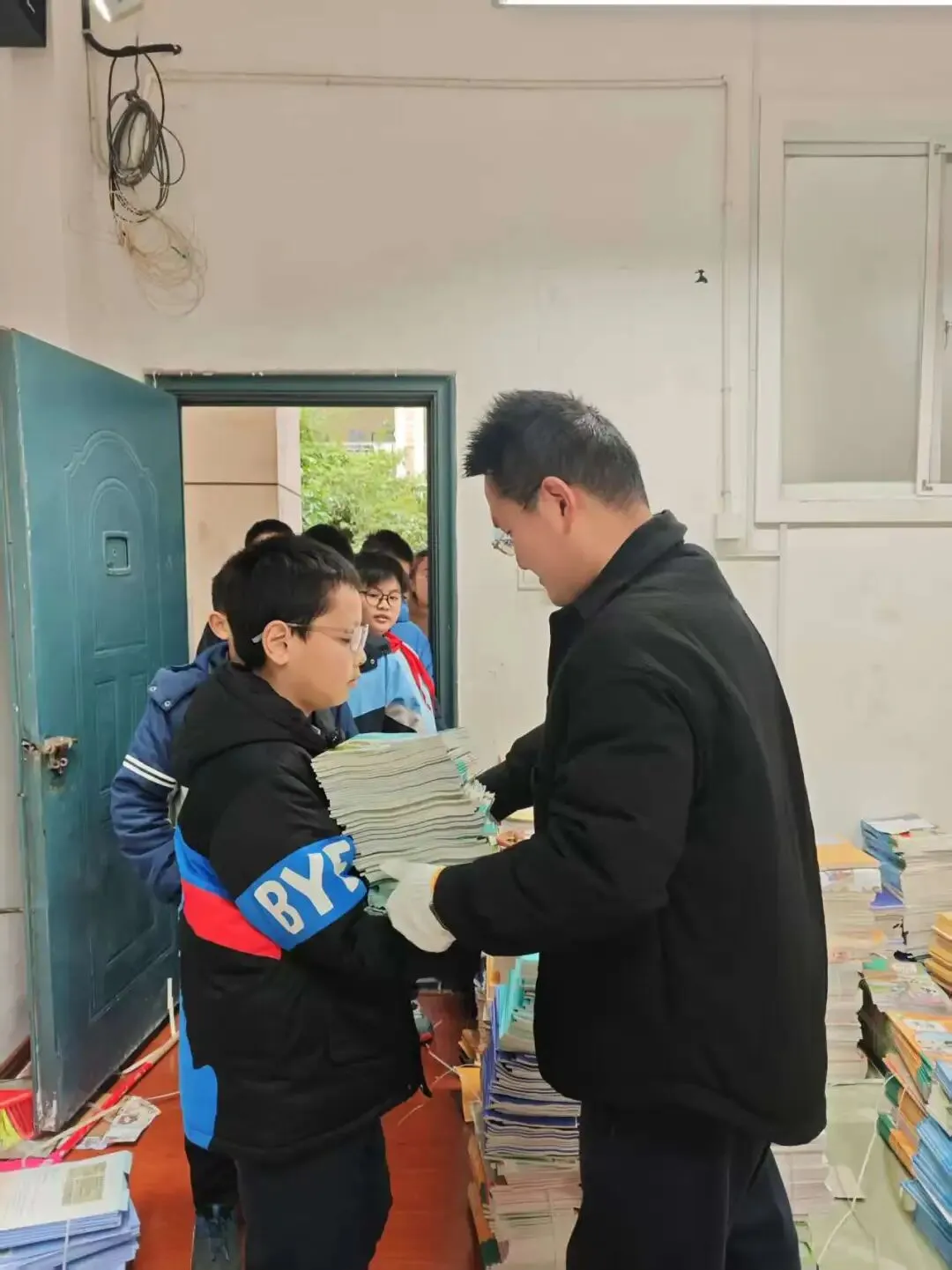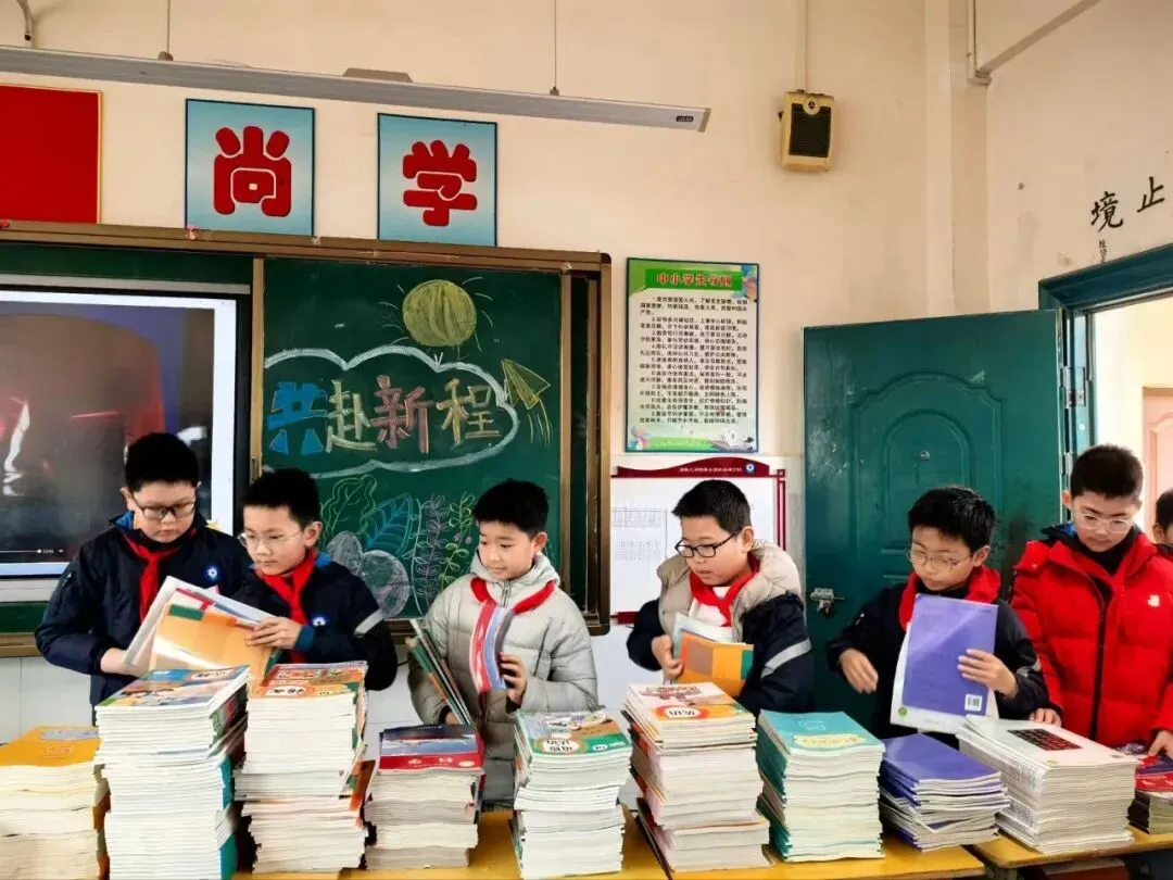 教室里,同学们分工合作、认真细致,有的擦拭门窗桌椅,有的清扫地面垃圾,有的整理讲台与书柜,大家齐心协力美化学习环境。随后,各班有序开展领书、发书、领取劳动工具等开学常规工作,孩子们捧着崭新的课本,脸上满是欣喜,认真整理书包、摆放文具,以积极饱满的状态迎接新学期的学习生活。