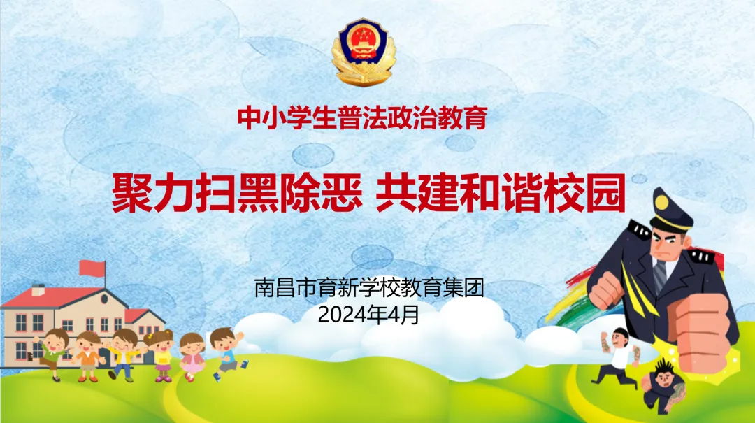 为深入贯彻落实上级“扫黑除恶”斗争精神,切实保护全校师生合法权益,建设平安和谐校园,4月24日至4月26日,南昌市育新学校教育集团北京西路校区、二七北路校区、董家窑路校区、南京西路校区分别邀请大院派出所、董家窑派出所的法治副校长,职业律师家长等来校宣传“扫黑除恶”与预防欺凌等知识。让社会、学校、家长一起聚力“扫黑除恶”、预防欺凌,为学生的健康成长保驾护航。法治副校长大院派出所闵红胜警官在北京西路校区开展“扫黑除恶”、预防校园欺凌主题班会。