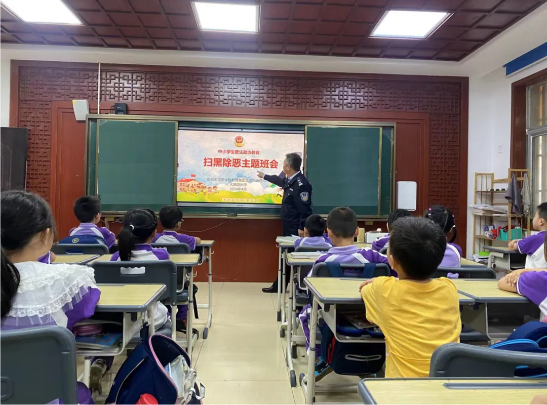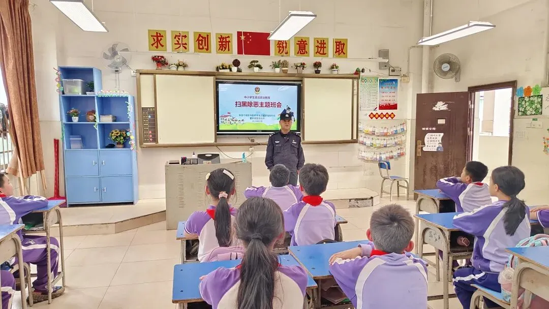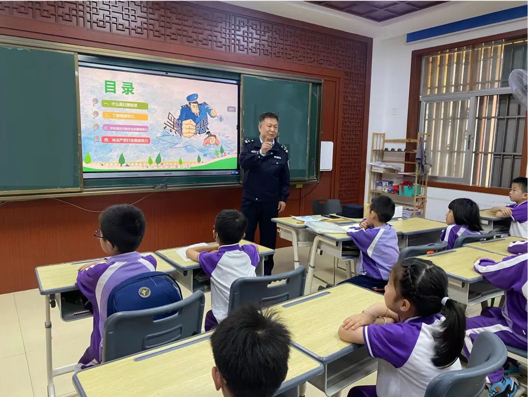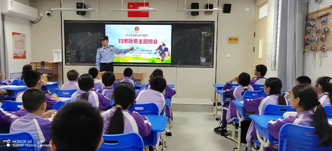 法治副校长董家窑派出所陈伟警官在董家窑路校区开展“扫黑除恶”、预防校园欺凌主题班会。