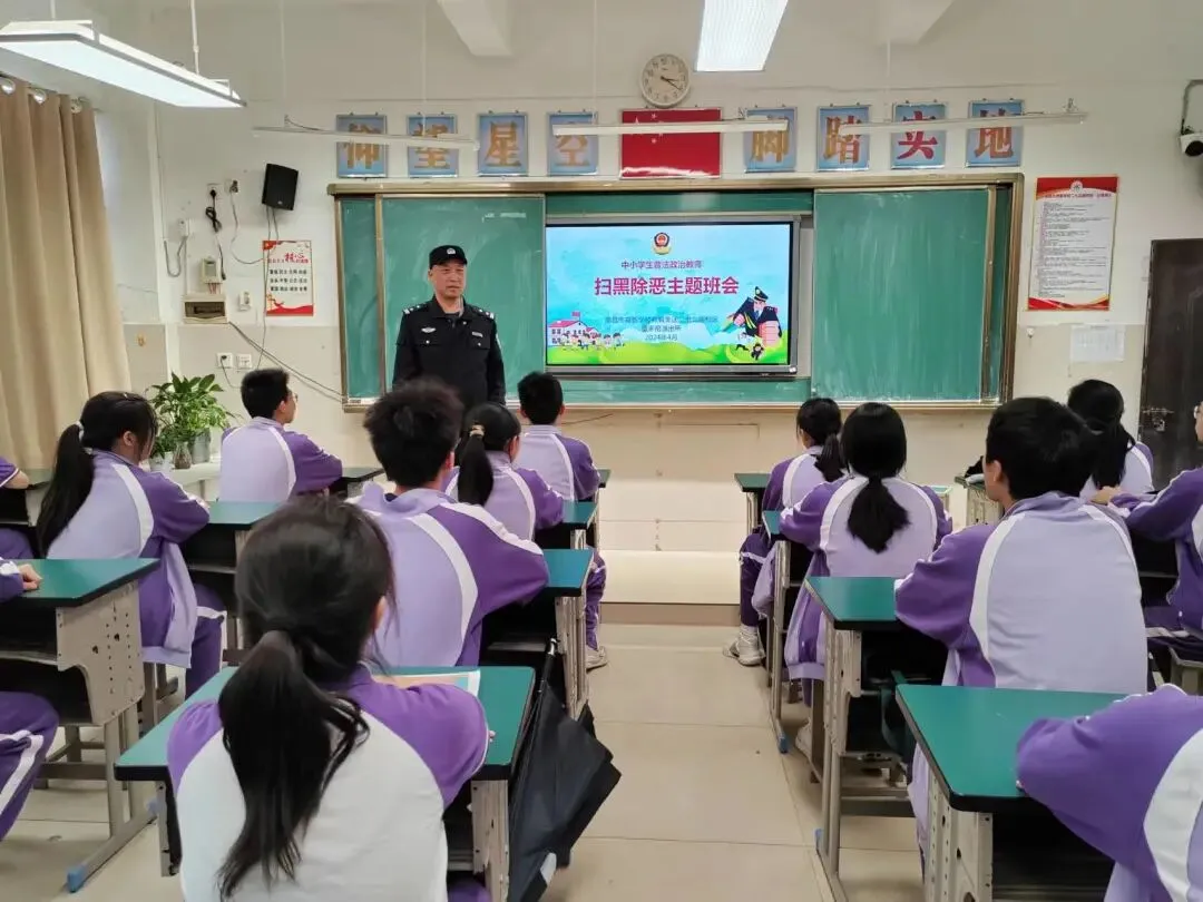 法治副校长董家窑派出所王志刚警官在董家窑路校区开展“扫黑除恶”、预防校园欺凌主题班会。