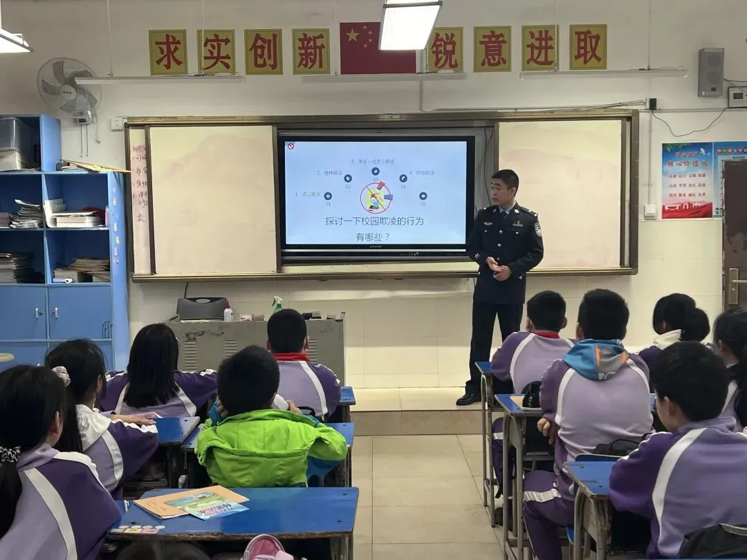 李家庄警务站罗豪警官在董家窑路校区开展预防校园欺凌主题班会。