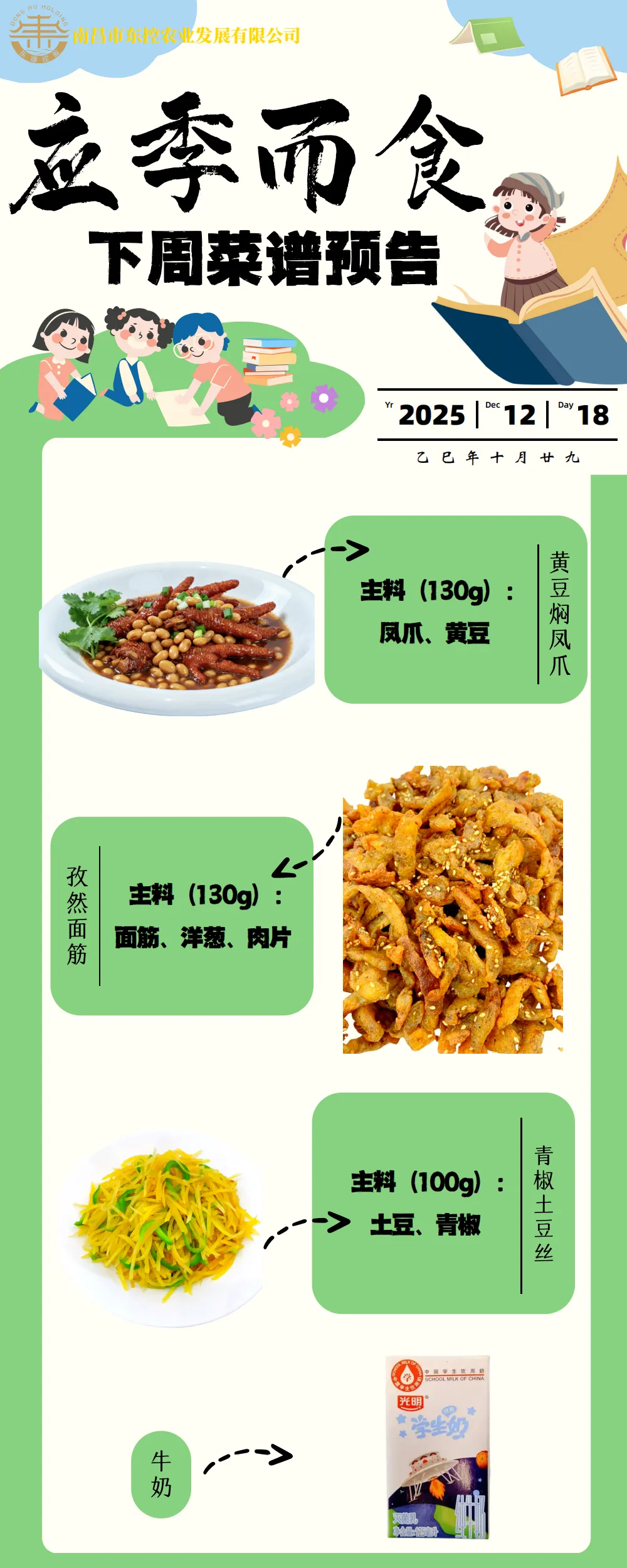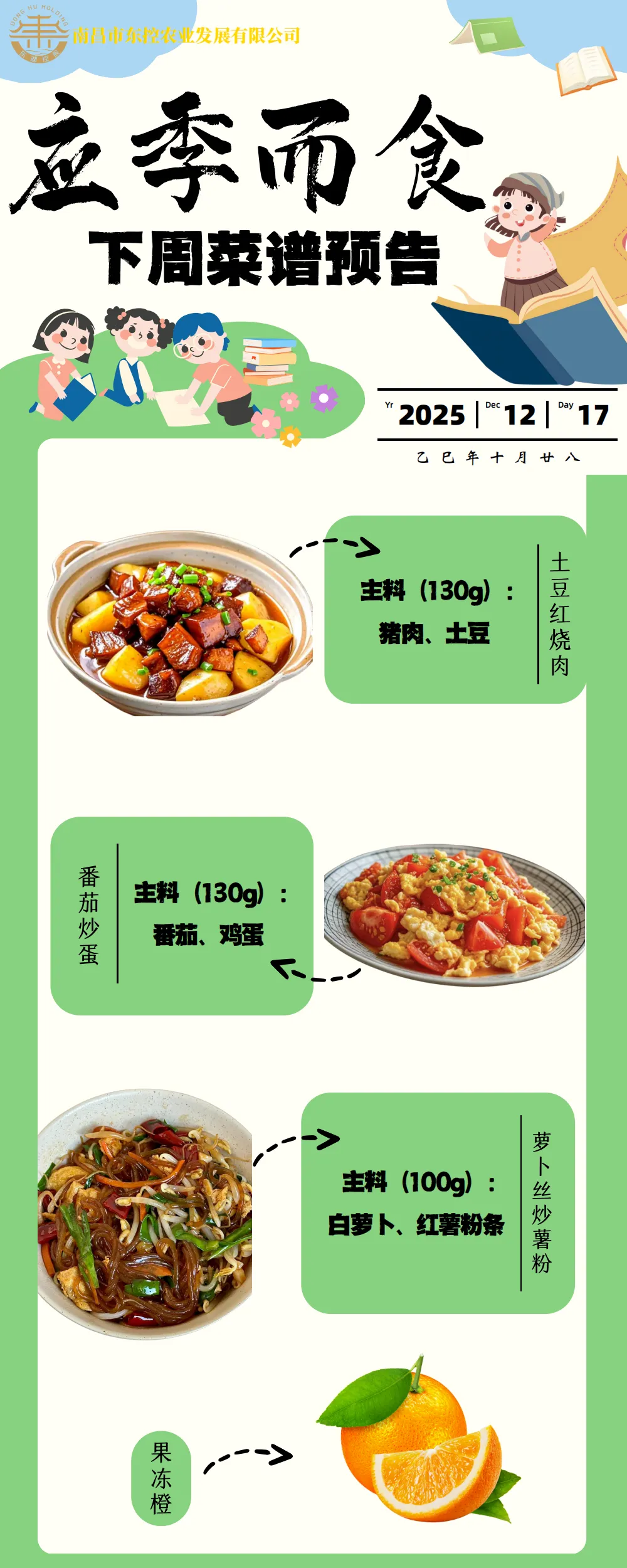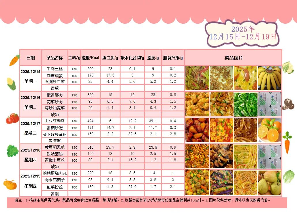 根据《南昌市中小学校(幼儿园)配送餐管理办法》和《南昌市加强校园餐管理措施十条(试行)》文件精神,现将学校2025年12月第3周带量菜谱公示如下。
