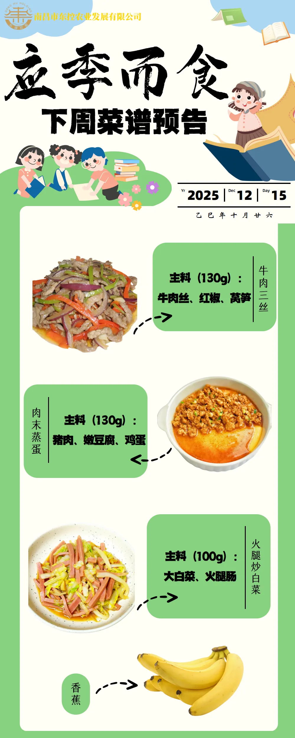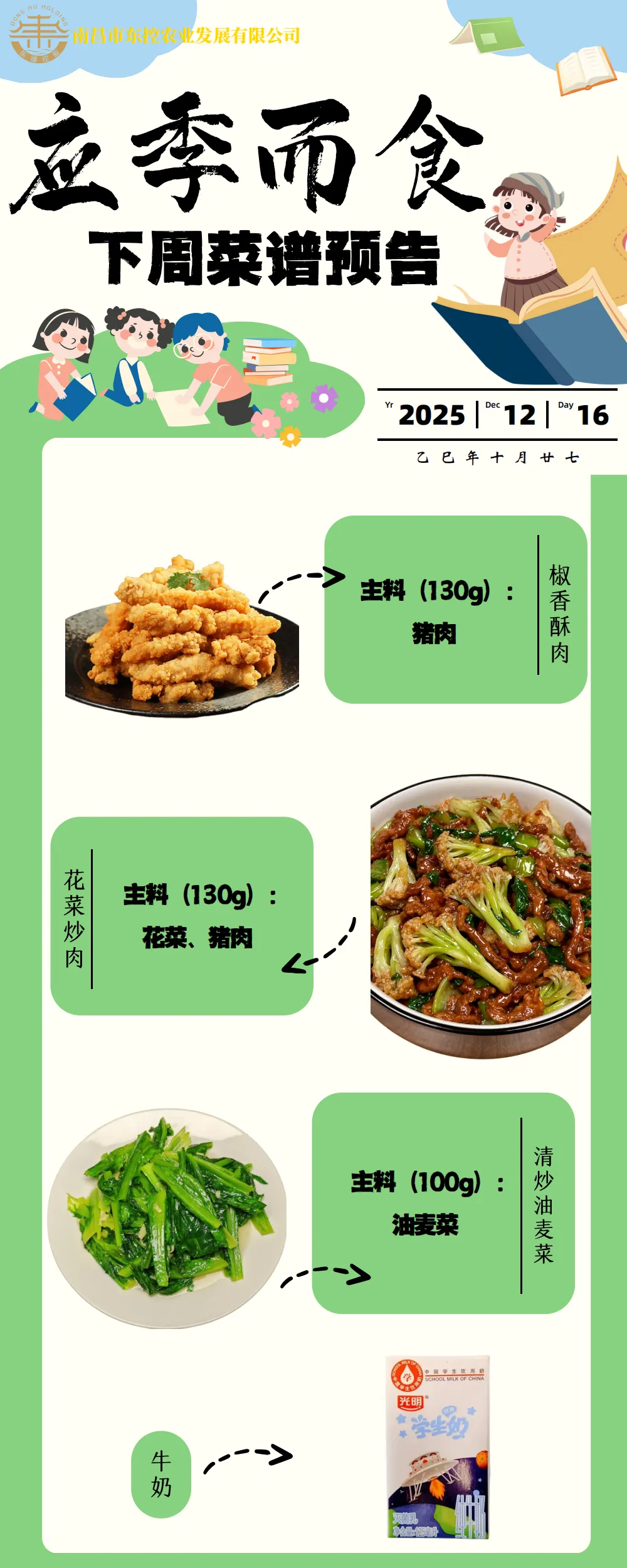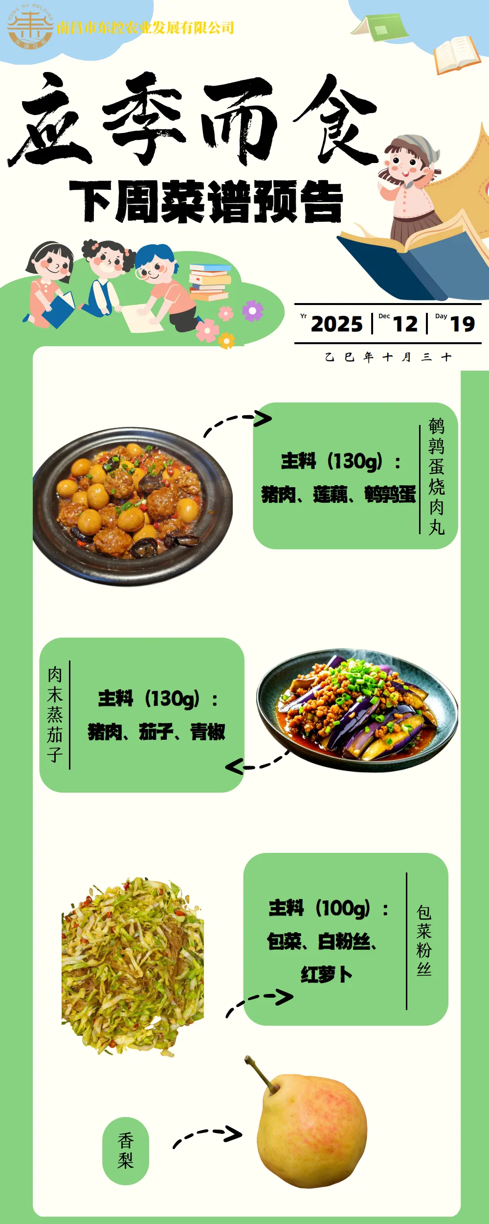 根据《南昌市中小学校(幼儿园)配送餐管理办法》和《南昌市加强校园餐管理措施十条(试行)》文件精神,现将学校2025年12月第3周带量菜谱公示如下。