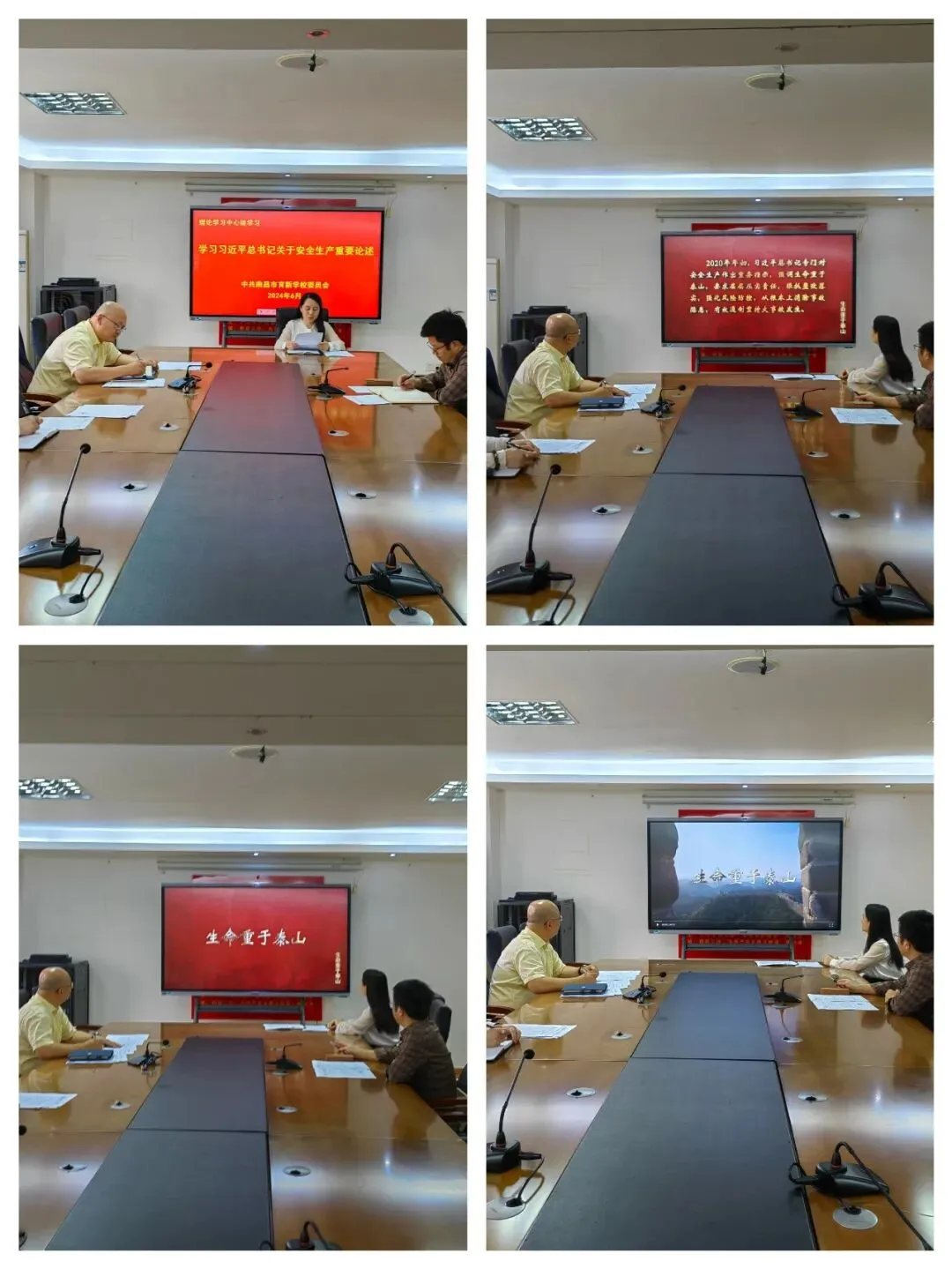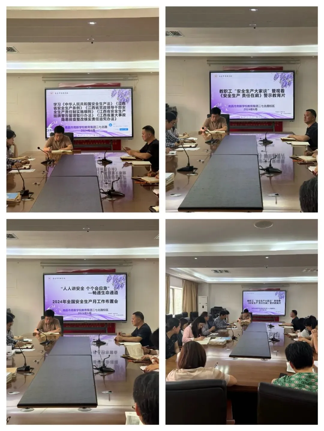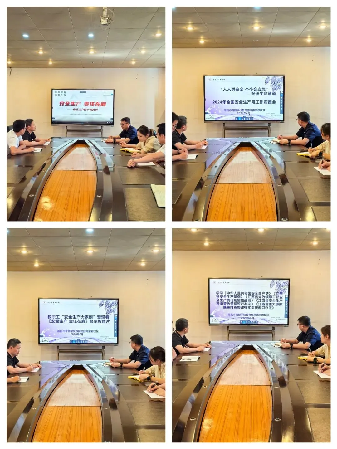 各校区以《深入学习贯彻习近平关于应急管理的重要论述》为重点,开展专题研讨、集中宣讲、辅导报告,全面领会习近平总书记关于安全生产重要论述的精髓要义,把理论学习成果转化为谋划推动安全生产工作的创新思路、务实举措、有效方法。重温《生命重于泰山——学习习近平总书记关于安全生产重要论述》电视专题片。学习《中华人民共和国安全生产法》《江西省安全生产条例》《江西省党政领导干部安全生产责任制实施细则》《江西省安全生产挂牌警告管理暂行办法》《江西省重大事故隐患排查整改核实责任追究办法》等法律法规和规章制度,推动推动“三管三必须”(管行业必须管安全、管业务必须管安全、管生产经营必须管安全)的法定要求落实落地落细。组织观看“安全生产月”主题宣传片、《安全生产责任在肩》警示教育片,推动树牢安全发展理念。集中深入学习《习近平总书记关于安全生产重要论述》