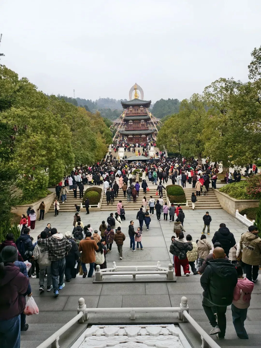 走在寺中,面对人流如织的人群,只有把手机举得高高的,才能拍照。