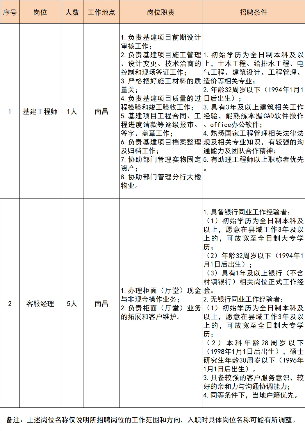 5.九江银行有权根据岗位需求变化及报名情况等因素,调整、取消或终止部分岗位的招聘工作,并对本次招聘享有最终解释权。