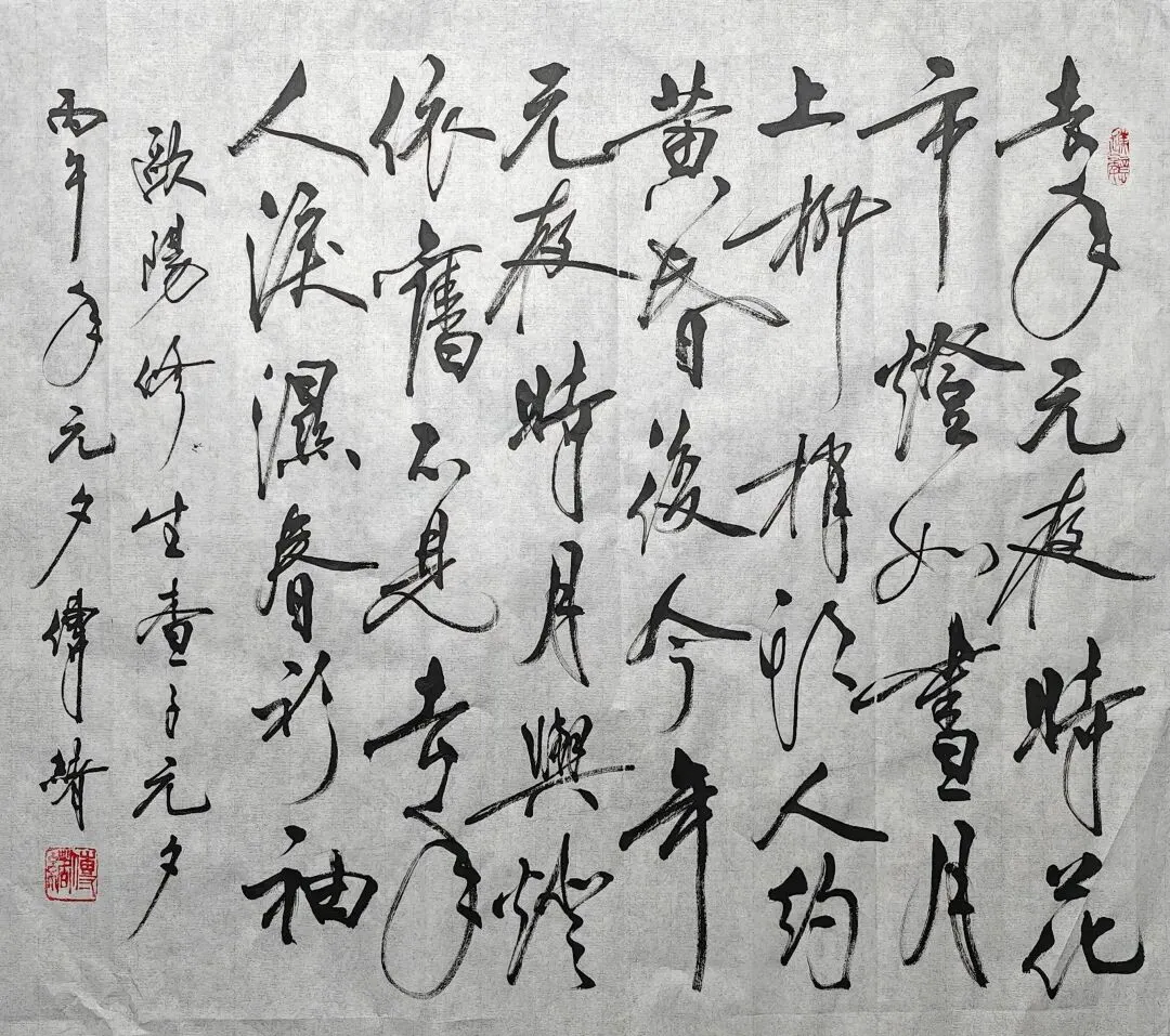 欧阳修《生查子・元夕》:去年元夜时,花市灯如昼。月上柳梢头,人约黄昏后。今年元夜时,月与灯依旧。不见去年人,泪湿春衫袖。黎传绪今译: