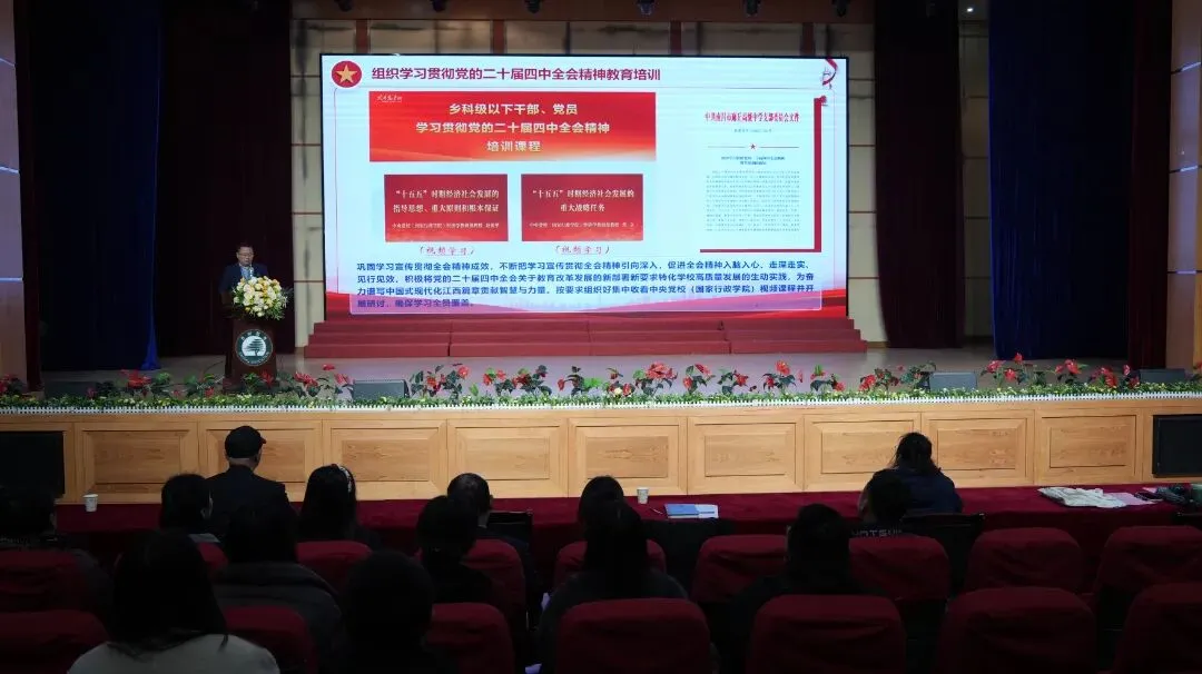持续深入学习贯彻党的二十届四中全会精神,根据中共南昌市委教育工委、南昌市教育局《全市教育系统学习宣传贯彻党的二十届四中全会精神总体安排》和中共南昌市委教育工委《关于深入开展党的二十届四中全会精神教育培训的通知》,扎实推进学校《关于学习宣传贯彻党的二十届四中全会精神工作方案》和《组织学习贯彻党的二十届四中全会精神教育培训的通知》的部署,巩固学习宣传贯彻全会精神成效,不断把学习宣传贯彻全会精神引向深入,促进全会精神入脑入心、走深走实、见行见效,积极将党的二十届四中全会关于教育改革发展的新部署新要求转化学校高质量发展的生动实践,为奋力谱写中国式现代化江西篇章贡献智慧与力量。按要求组织好集中收看中央党校(国家行政学院)视频课程并开展研讨,确保学习全员覆盖。