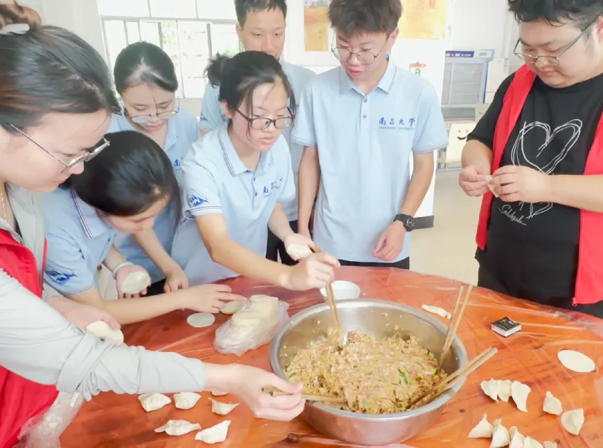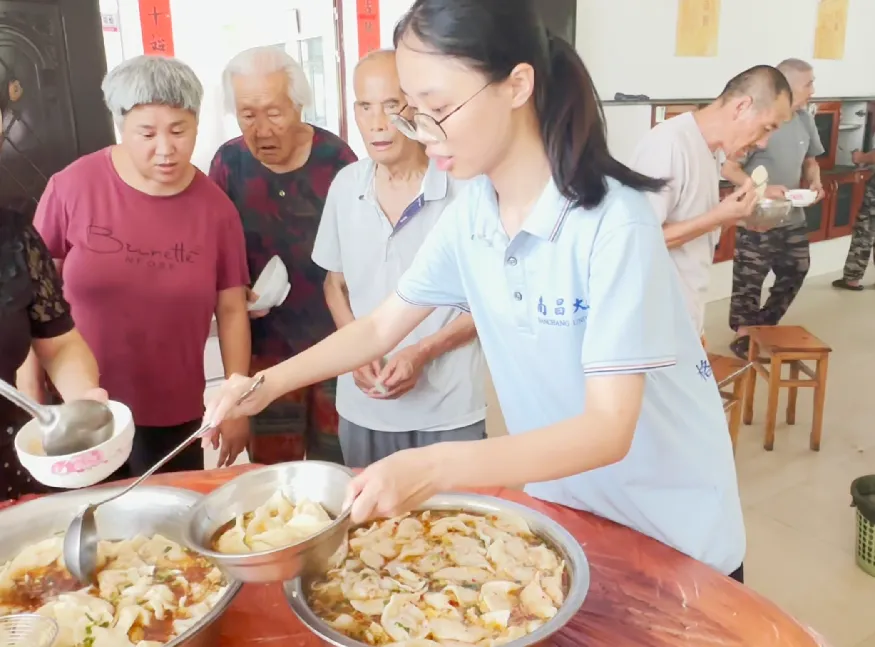 敬老院内,实践队队员们拿起扫帚和铲子,在庭院内认真清扫垃圾、拔除杂草,为老人创造一个更加干净、整洁的生活环境,并走进厨房,与香屯街道工作人员一起为老人包饺子。大家分工合作、默契配合,共同为老人们献上了一顿丰盛的午餐。当一盘盘香气四溢的饺子端上餐桌时,老人们的脸上都洋溢着幸福的笑容。