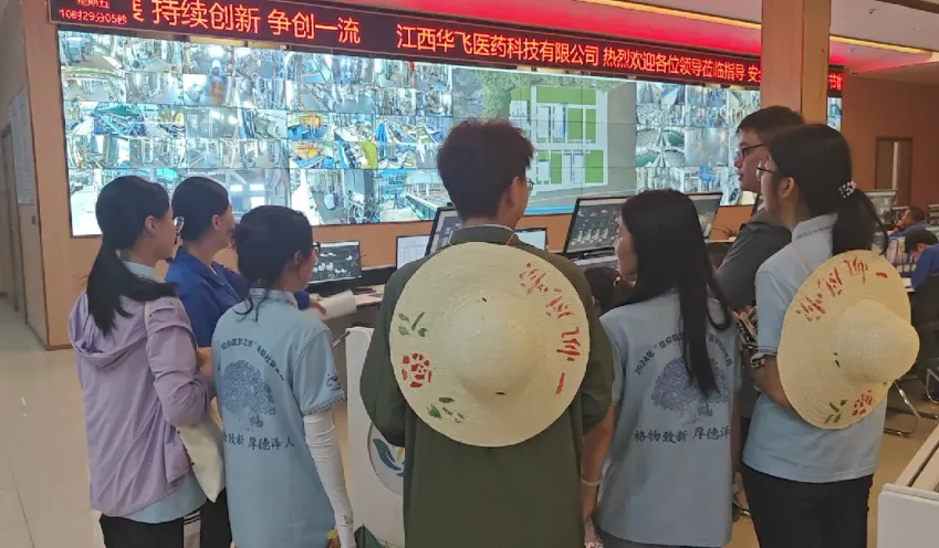 在高新区管委会工作人员的带领下,实践队队员们来到了江西华飞医药科技有限公司,深刻认识到了中控室作为生产核心的监督、管控与安全防治作用,感受到了预防安全事故、保障员工安全及环境保护的重要性。