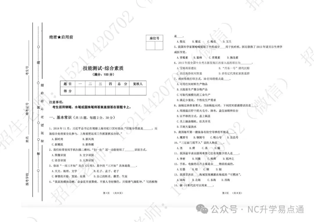 >收藏 转发!2026年南昌理工学院单招考试 |往年真题
