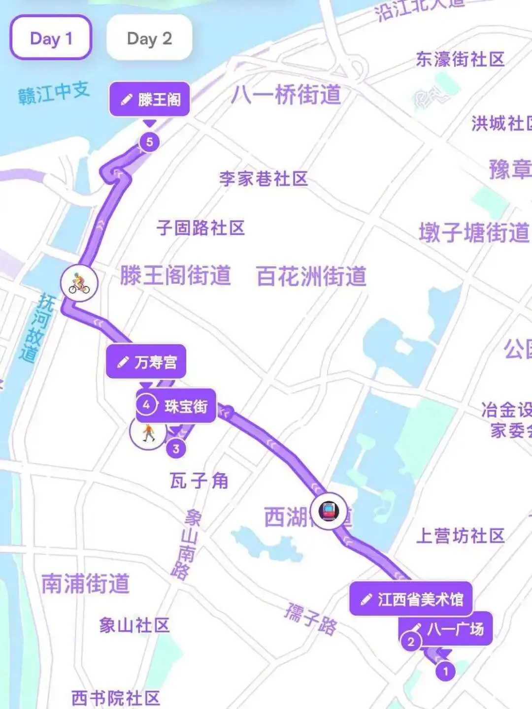 南昌交通超友好,核心景点靠地铁+步行搞定,不花高价打车,省时省钱,特种兵直接照搬👇